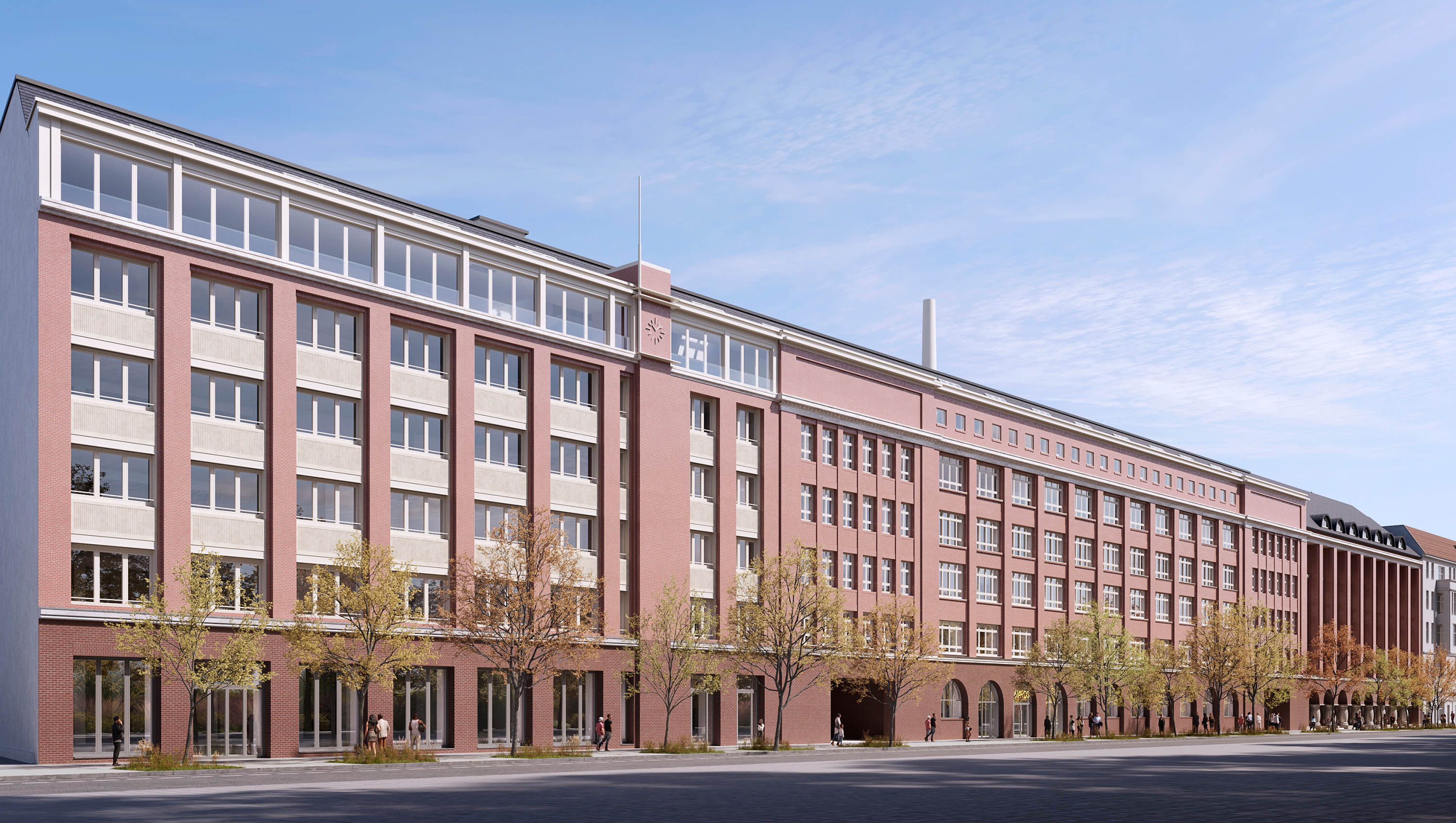 Die charakteristische Backsteinfassade sowie weitere strukturprägende Bauelemente des Bestands bleiben erhalten und werden in das neue Nutzungskonzept integriert. Damit bleibt die historische Identität des Ensembles als Teil des Stadtbildes bestehen.