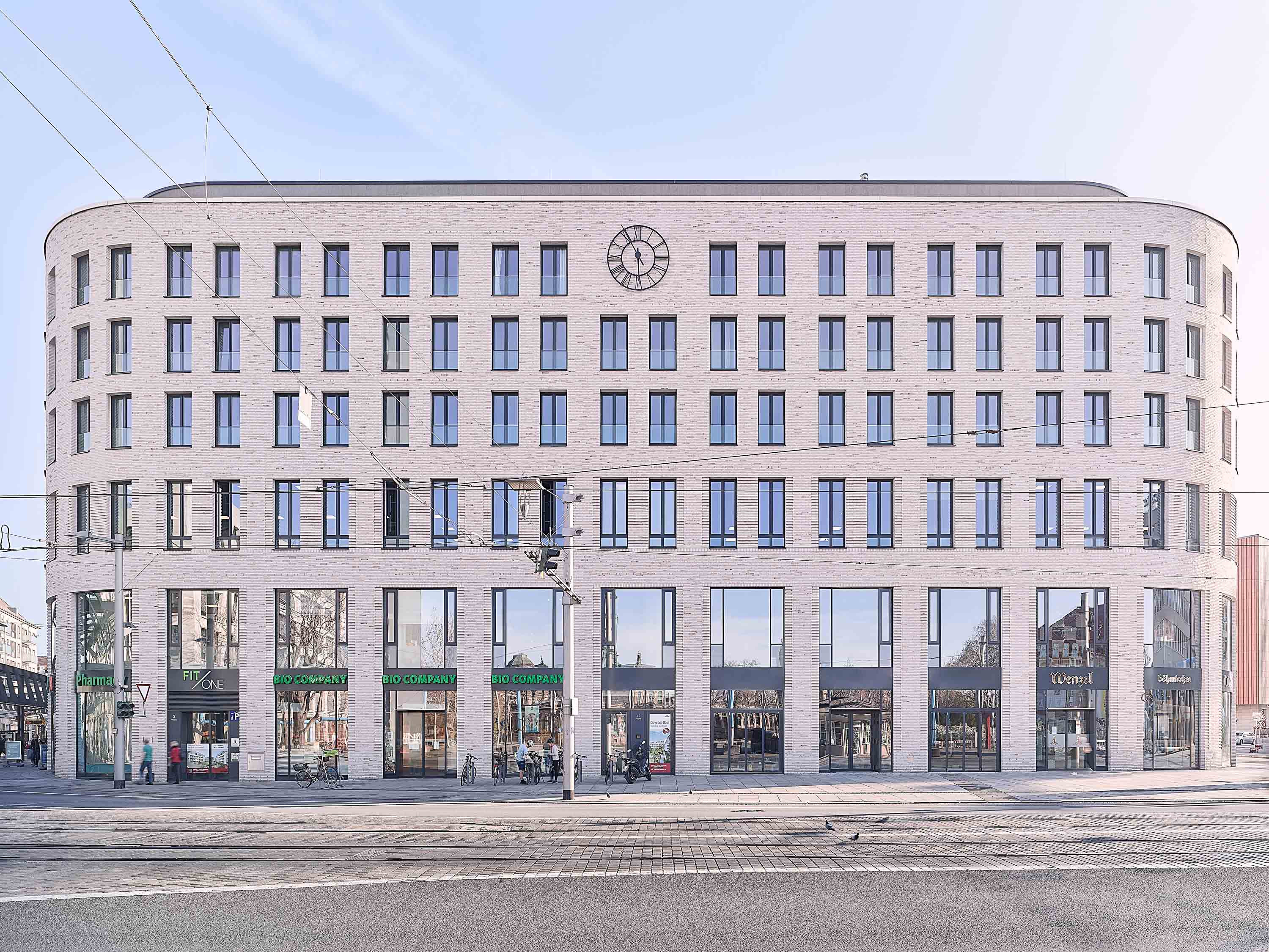 Der Nutzungsmix sieht im Erdgeschoss und ersten Obergeschoss Gewerbeflächen und im Zweiten Büros sowie ein Fitness-Center vor. Mietwohnungen entstanden im dritten bis fünften Obergeschoss. Im Staffelgeschoss befinden sich Penthouse-Wohnungen. Alle den Straßen zugewandten Seiten und die südliche Hofeinmündung wurden mit einer Klinkerfassade bekleidet.