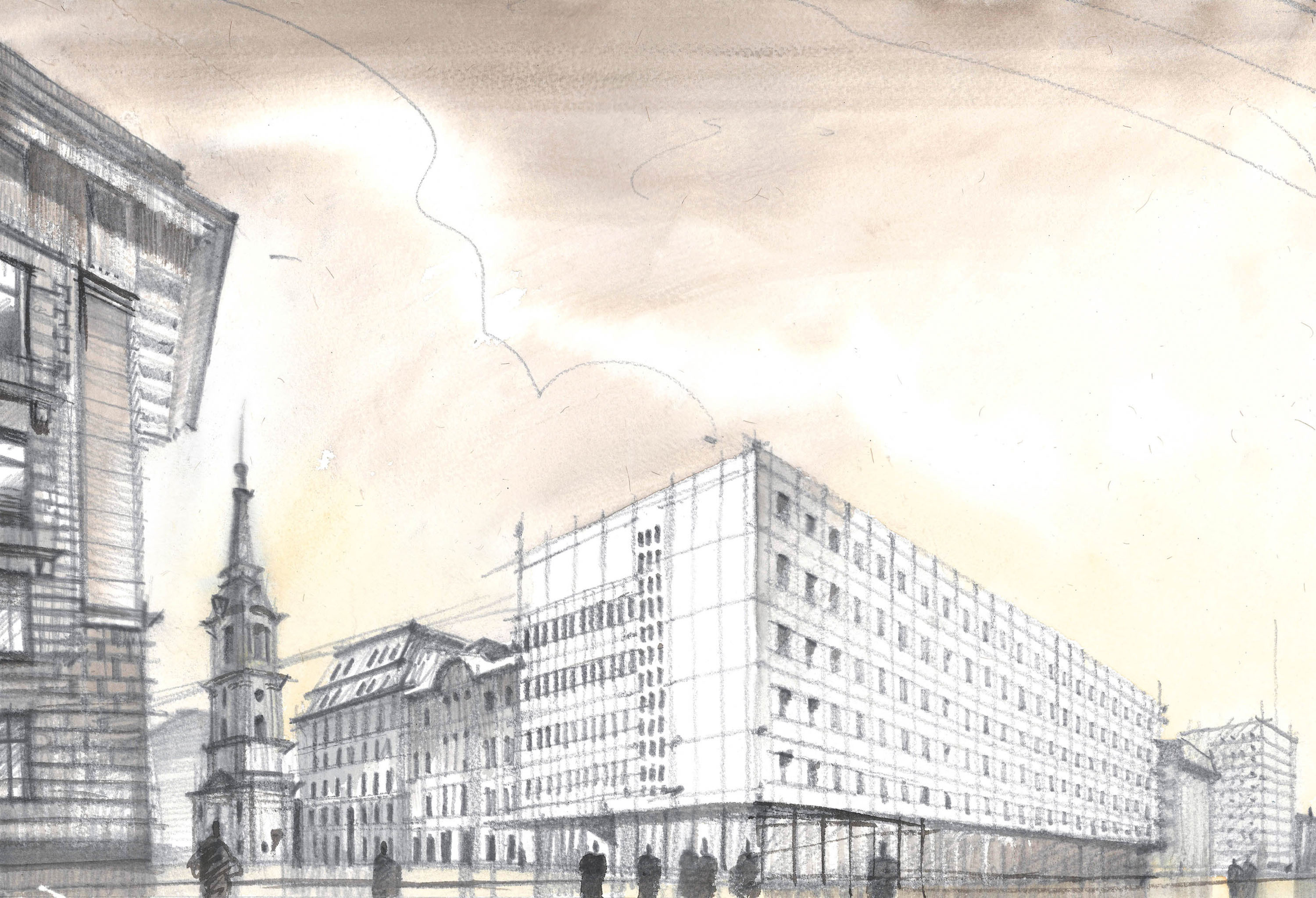 Die zweite Bauphase umfasst die Sanierung des östlichen Bestandsgebäudes sowie die Errichtung eines straßenbegleitenden Büroneubaus zur Stralauer Straße und eines weiteren Bürogebäudes an der Waisenstraße. Transparente Fassaden, ein belebter Sockel mit Gastronomie und/oder Einzelhandel sowie begrünte Innenhöfe tragen zur Öffnung und Belebung des Quartiers bei.