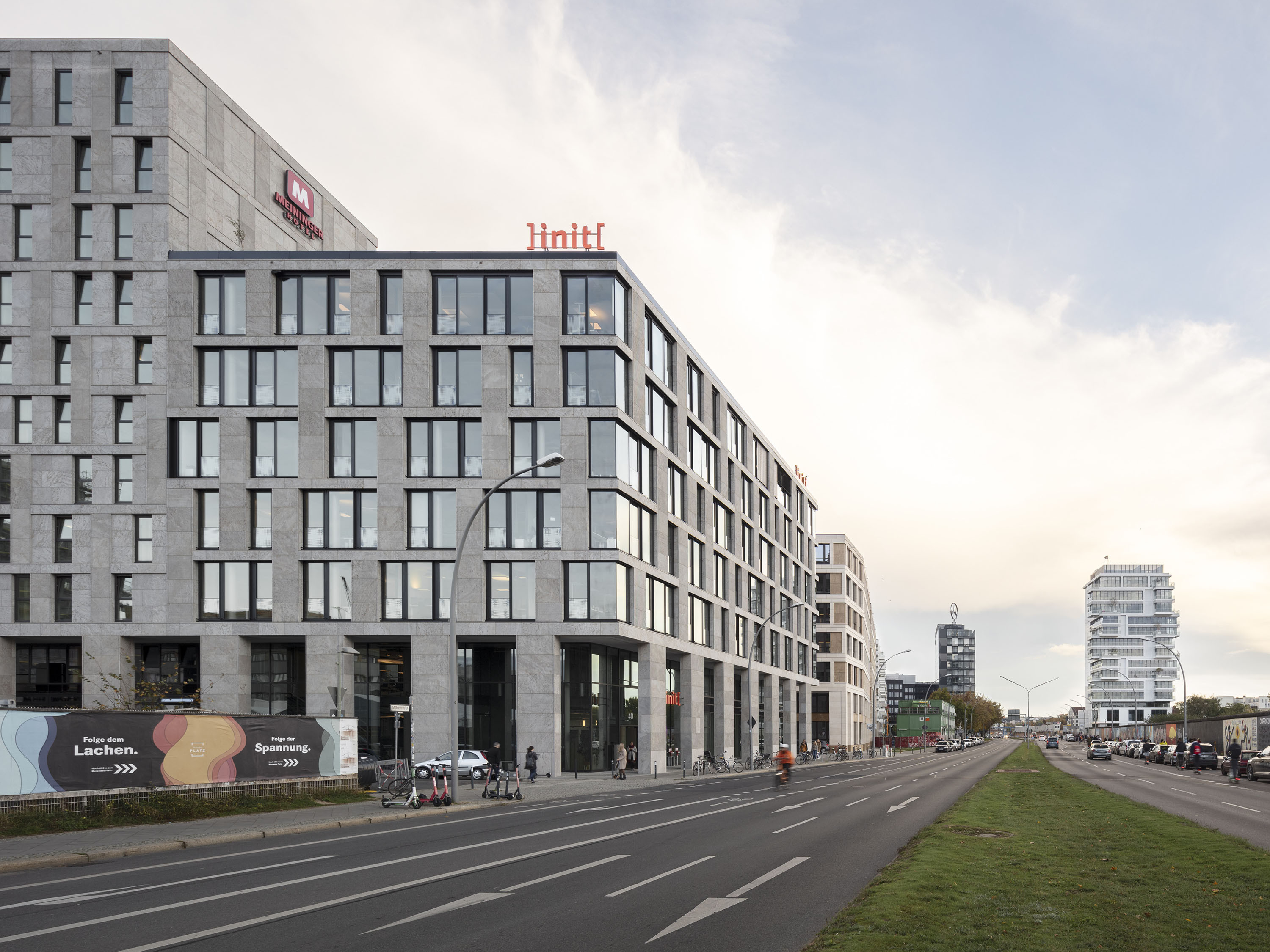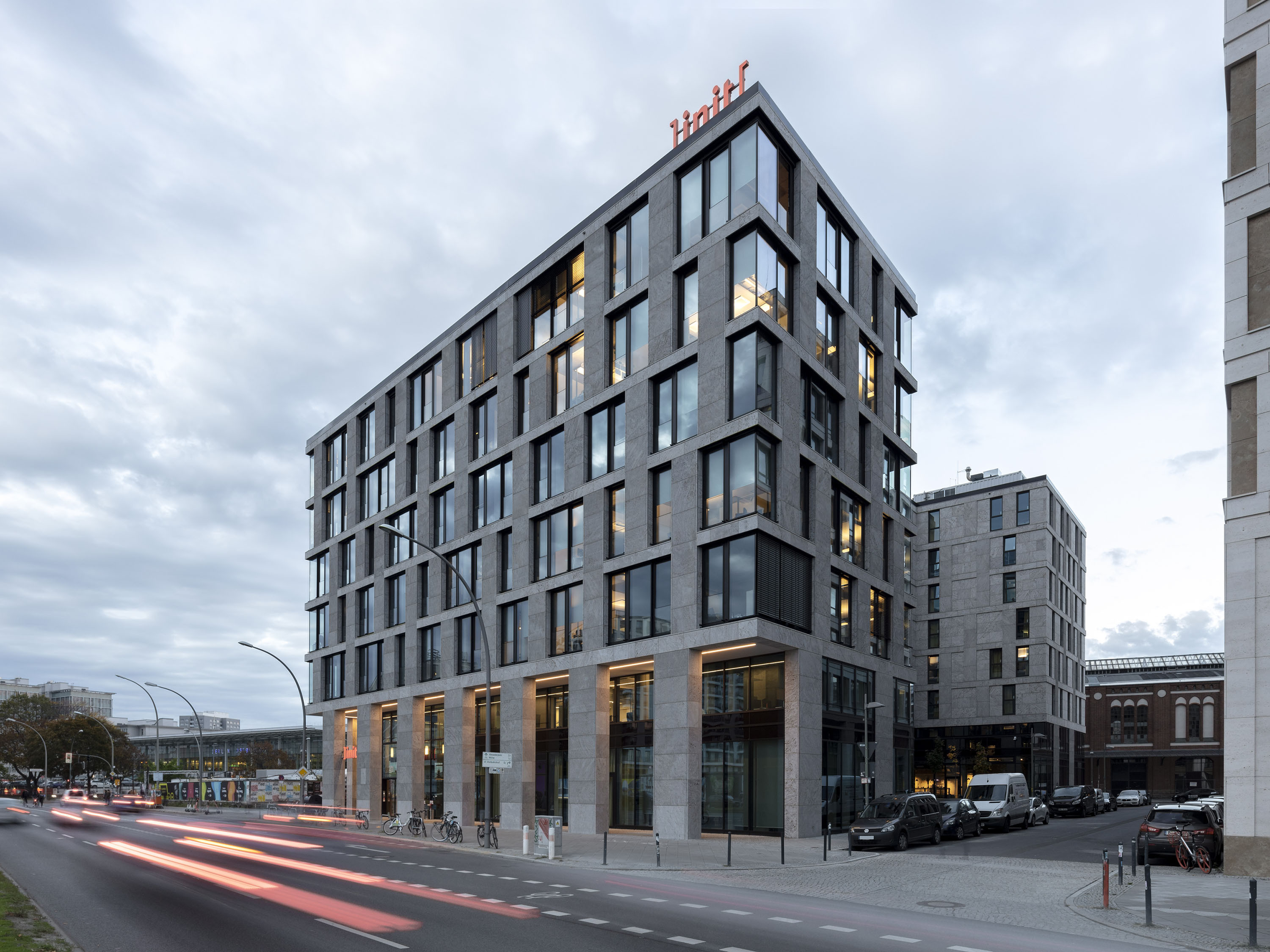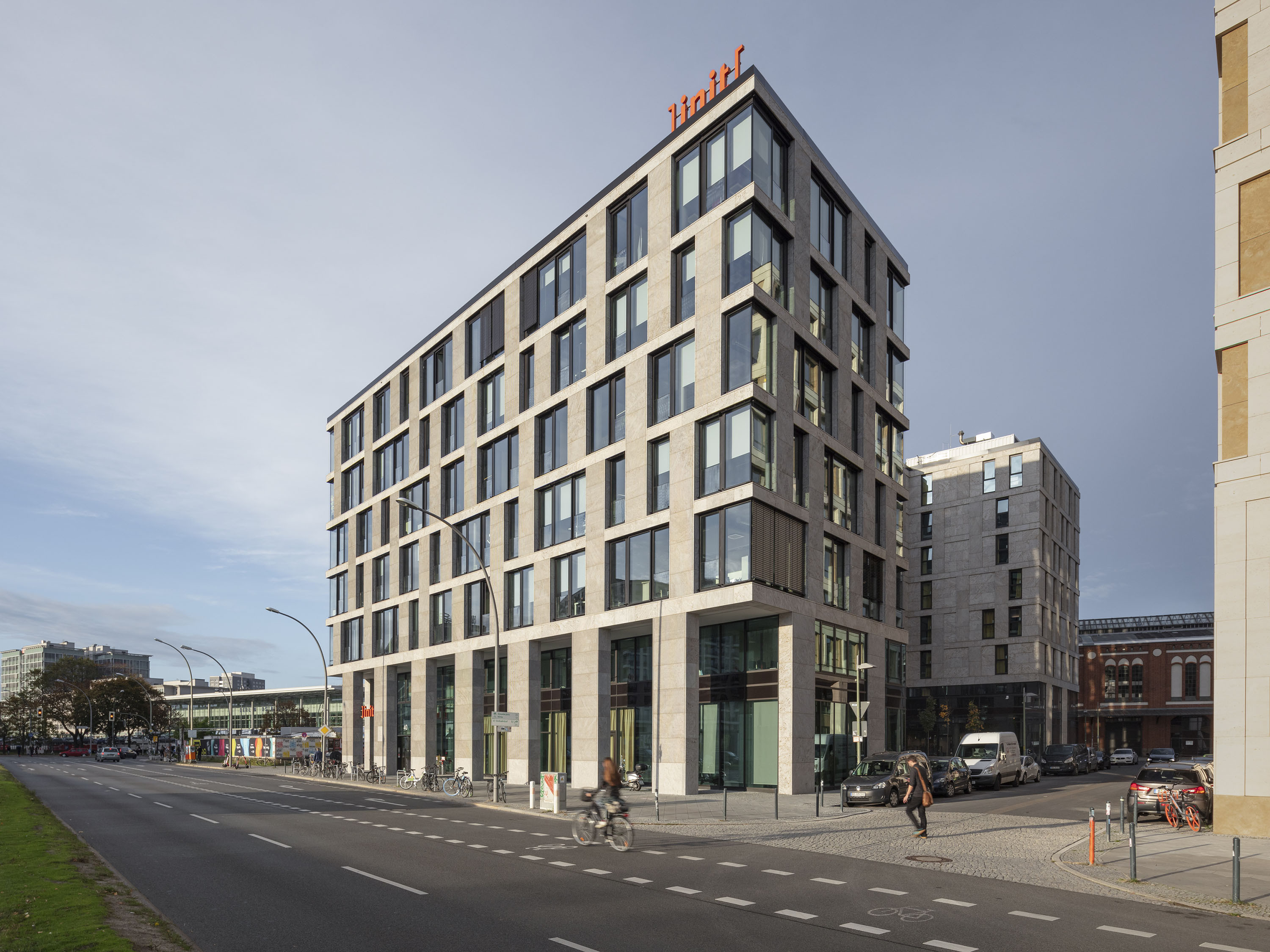 Das Grundstück ist Teil des Geländes am historischen Postbahnhof und liegt in direkter Nähe zur East-Side-Gallery. Zusammen mit einem kurz zuvor fertig gestellten Hotelgebäude bildet das Bürogebäude in Kubatur und Materialität eine gestalterische Einheit.