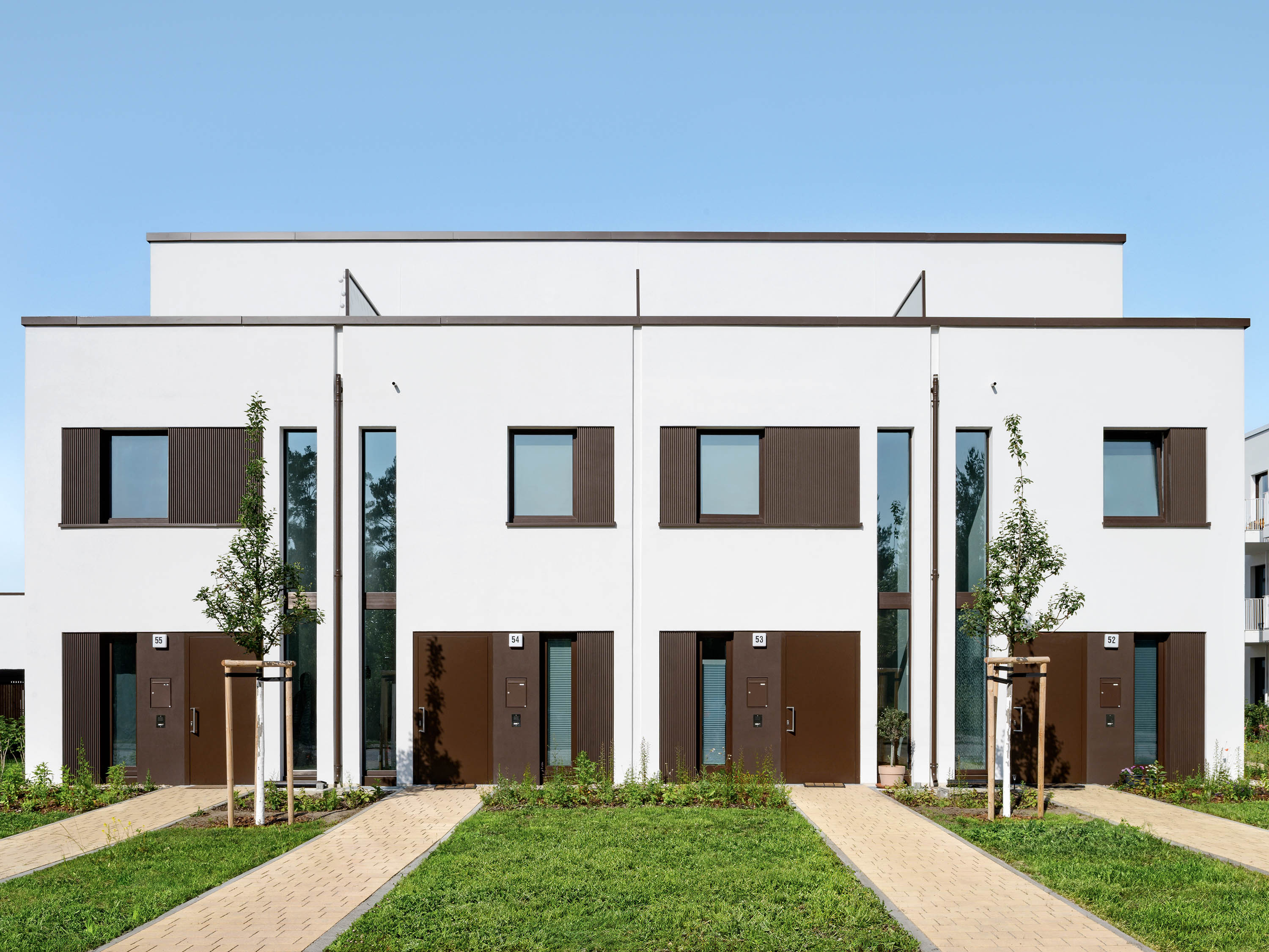 With its clean lines, Wohnen am Wiesenpark is designed as a modern neighbourhood. In order to create a uniform yet varied appearance, special emphasis was placed during the planning stage on achieving a balanced mix of suitable building structures and moderate building sizes to create a harmonious yet diverse overall look.