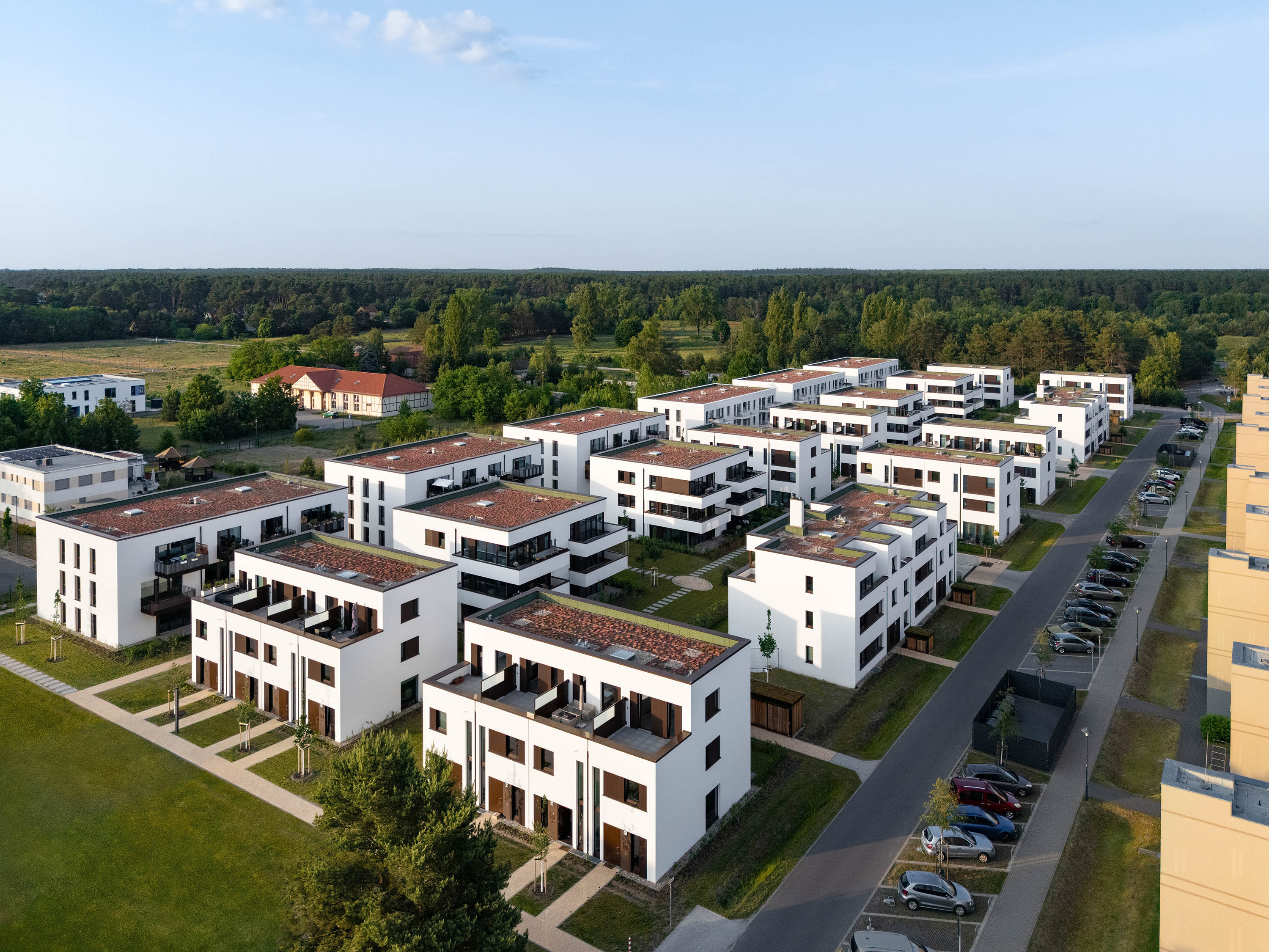 A total of 20 three-storey buildings were constructed on the site, which was divided into two construction areas: eight garden houses, four city villas, six multi-storey apartment buildings and two maisonette houses. With living spaces ranging from 48 to 153 sqm, the two- to five-room apartments, available as floor units or functional living units, offer a home for every lifestyle.