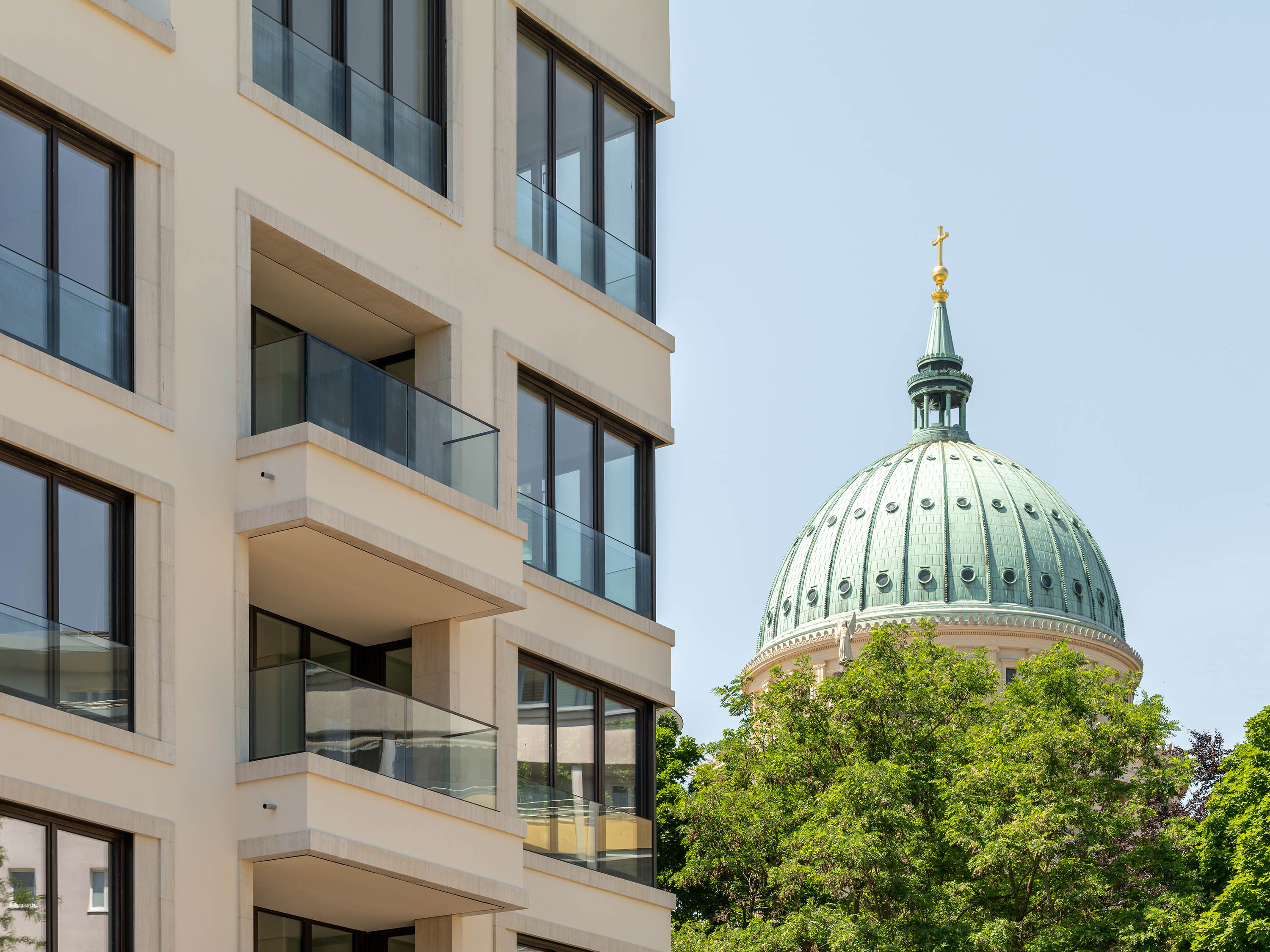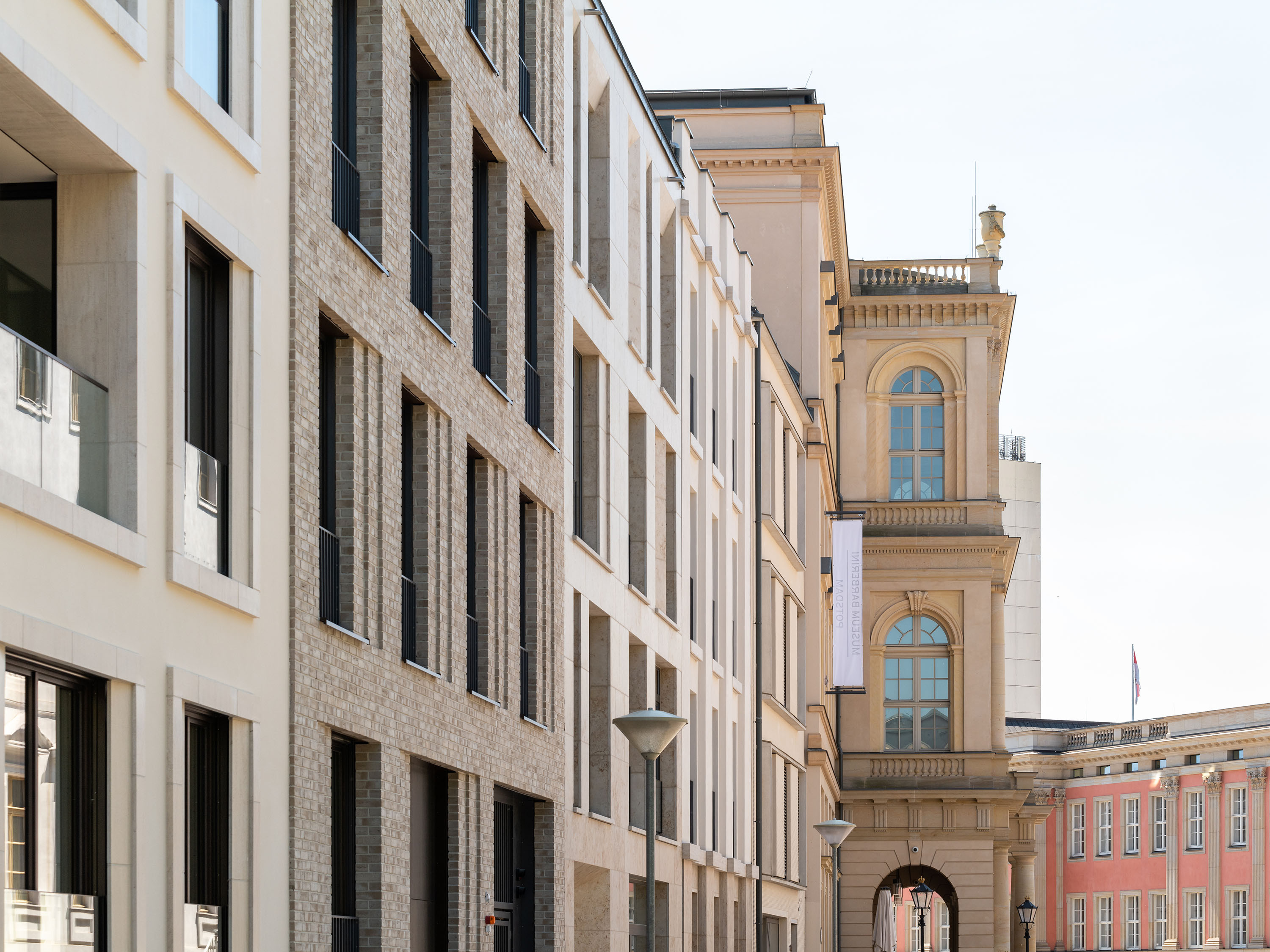 The cubature and proportions of the new development are orientated towards its surroundings. The staggering back of the upper storeys towards the water and Brauerstrasse creates a striking gesture in the public space. Small-scale granulation and heterogeneity of appearance allow this group of houses to pick up the character of the development to the east of the museum.