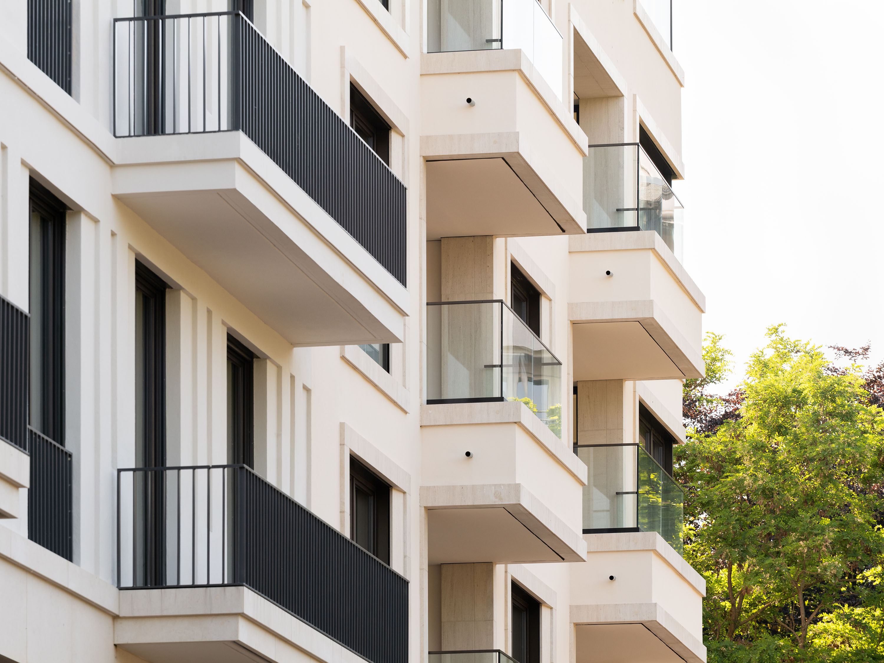Architectural details give the ensemble a lively character. The façades vary in design and choice of materials.