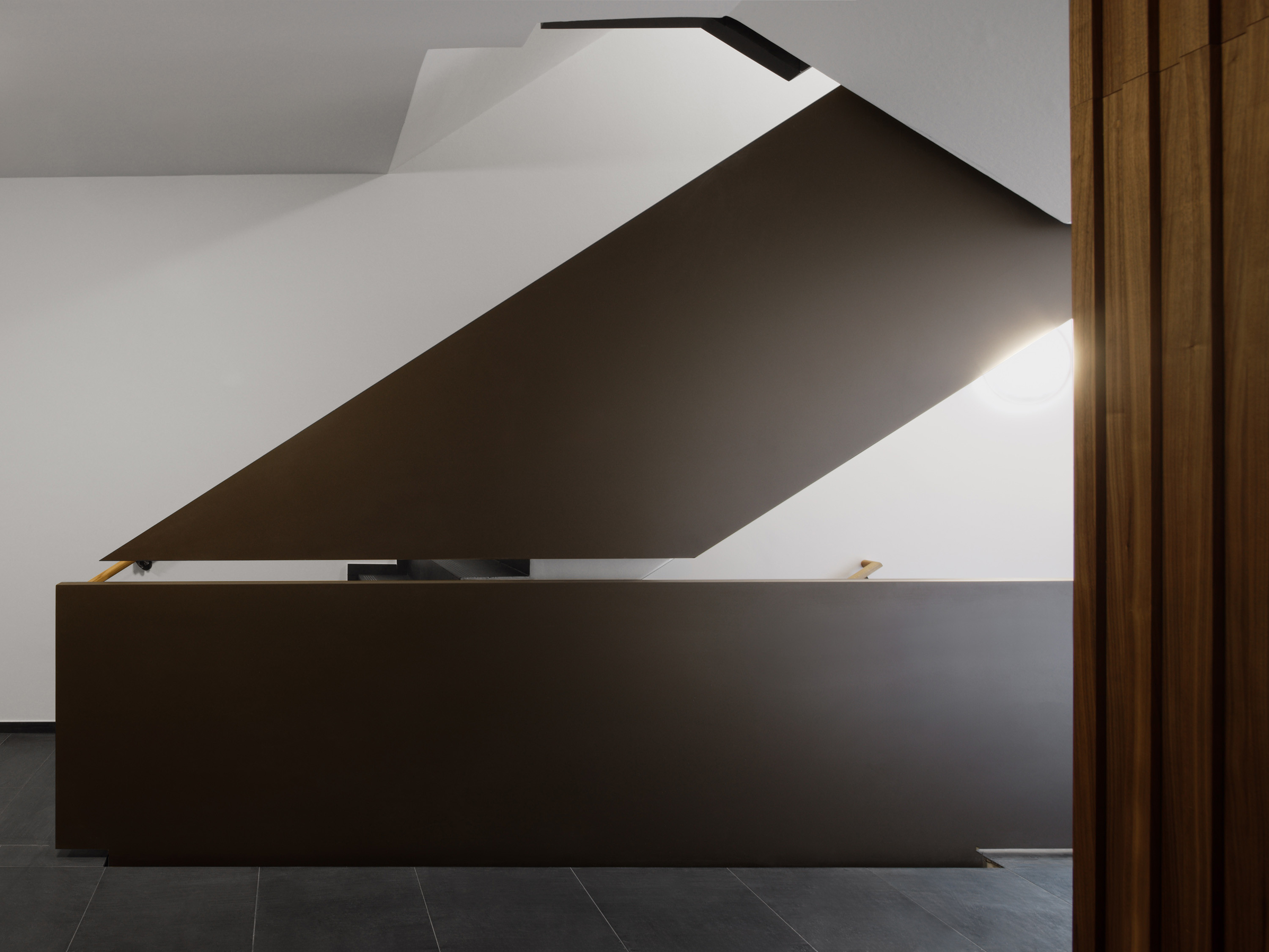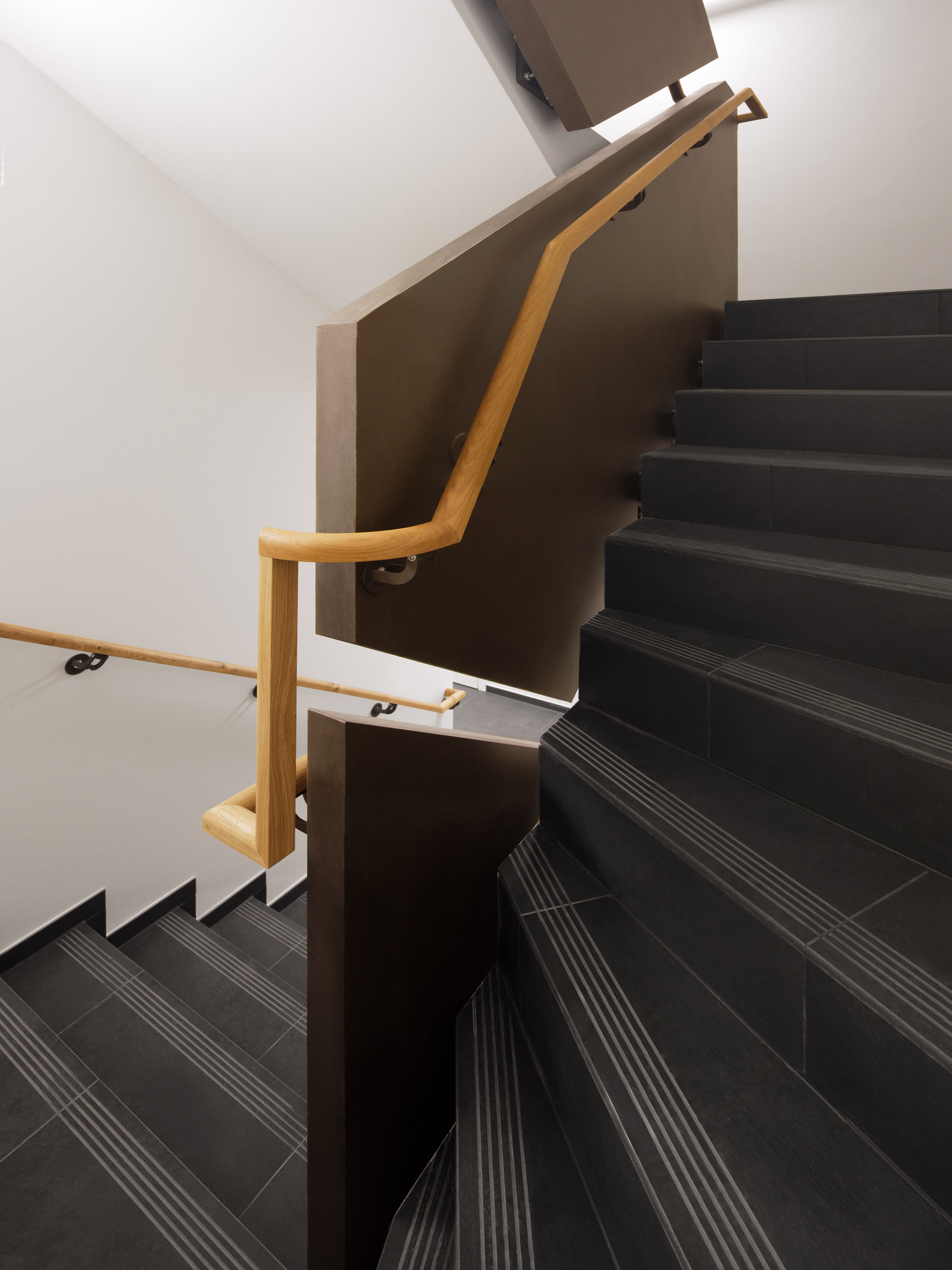 The staircase with its expressively curved handrails was also designed by TCHOBAN VOSS Architects.