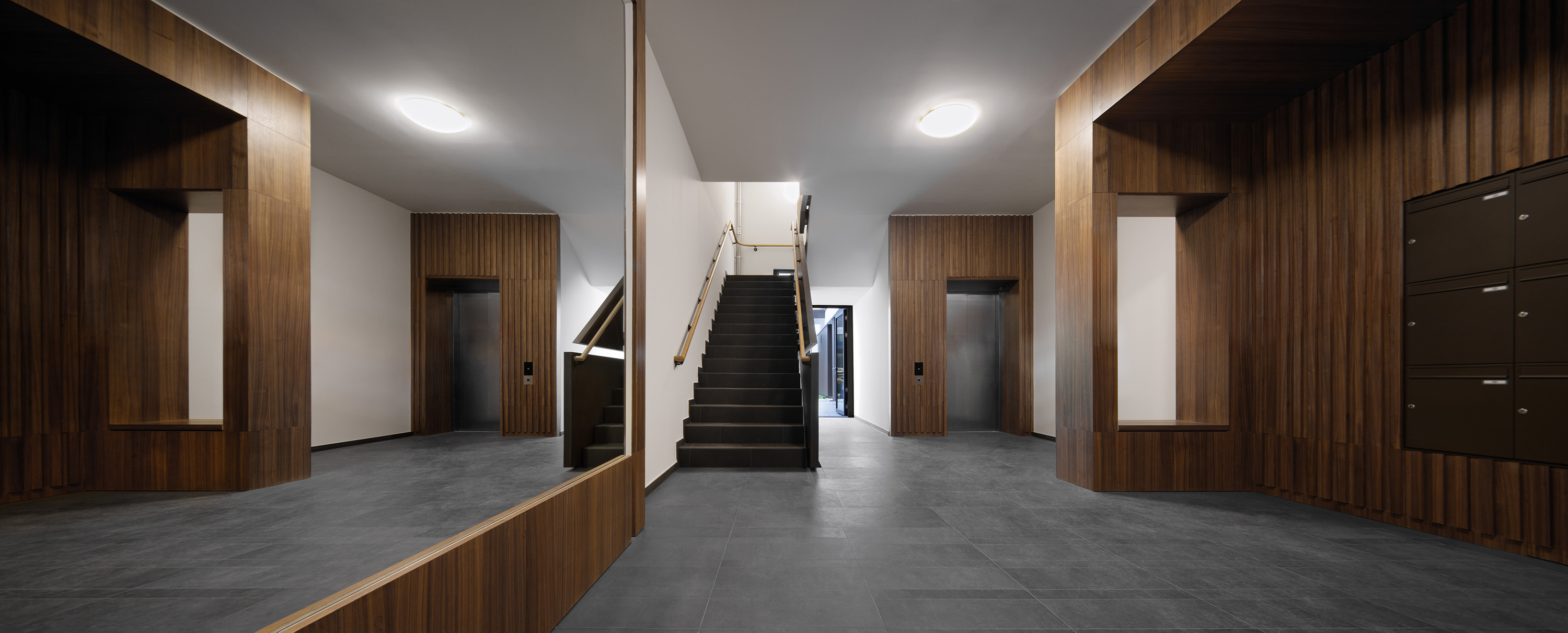 Its architectural language is clearly rooted in the 21st century, while at the same time forming a worthy addition to the historic buildings in the neighbourhood. The project fills a gap in the typical Berlin perimeter block development on Senefelder Strasse, not far from Helmholtzplatz, which also gave the project its name.