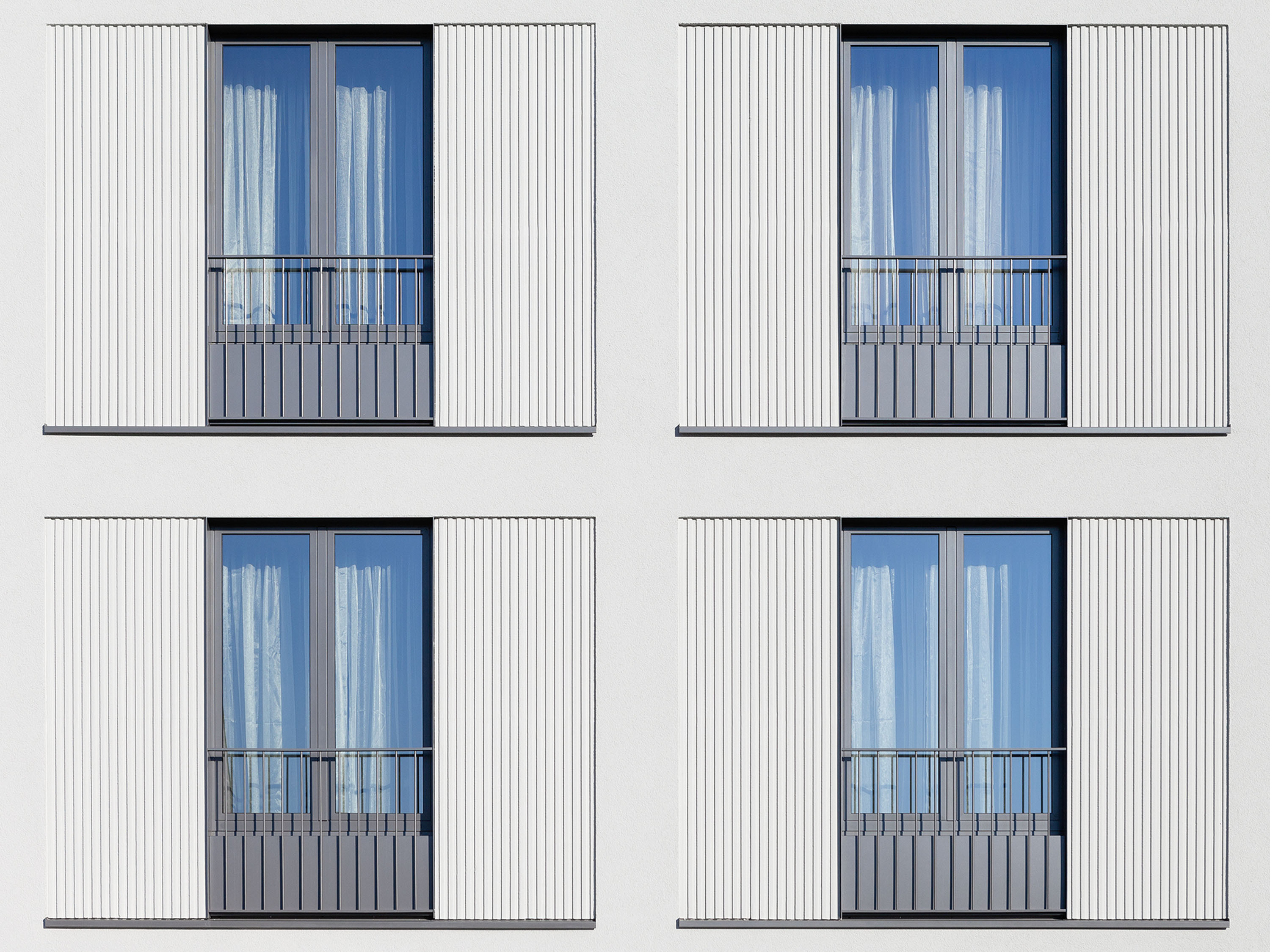The radiantly bright façade of the new building is characterised by the combination of a strict grid and sculptural elements. It is structured by elegantly proportioned window openings, flat bevelled reveals and decorative elements, so that individual storeys can be read.