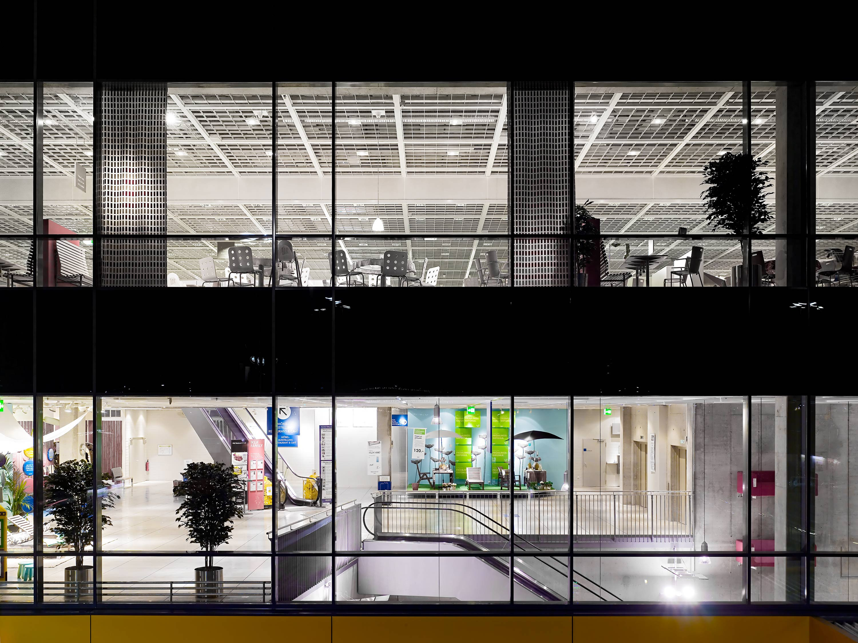 The special feature of this location is its vertical organization: the entrance hall and the sales and exhibition areas are not located on the first floor, but on the two upper floors. The ground floor and basement are designed as parking levels, allowing visitors to arrive comfortably and access the building directly.