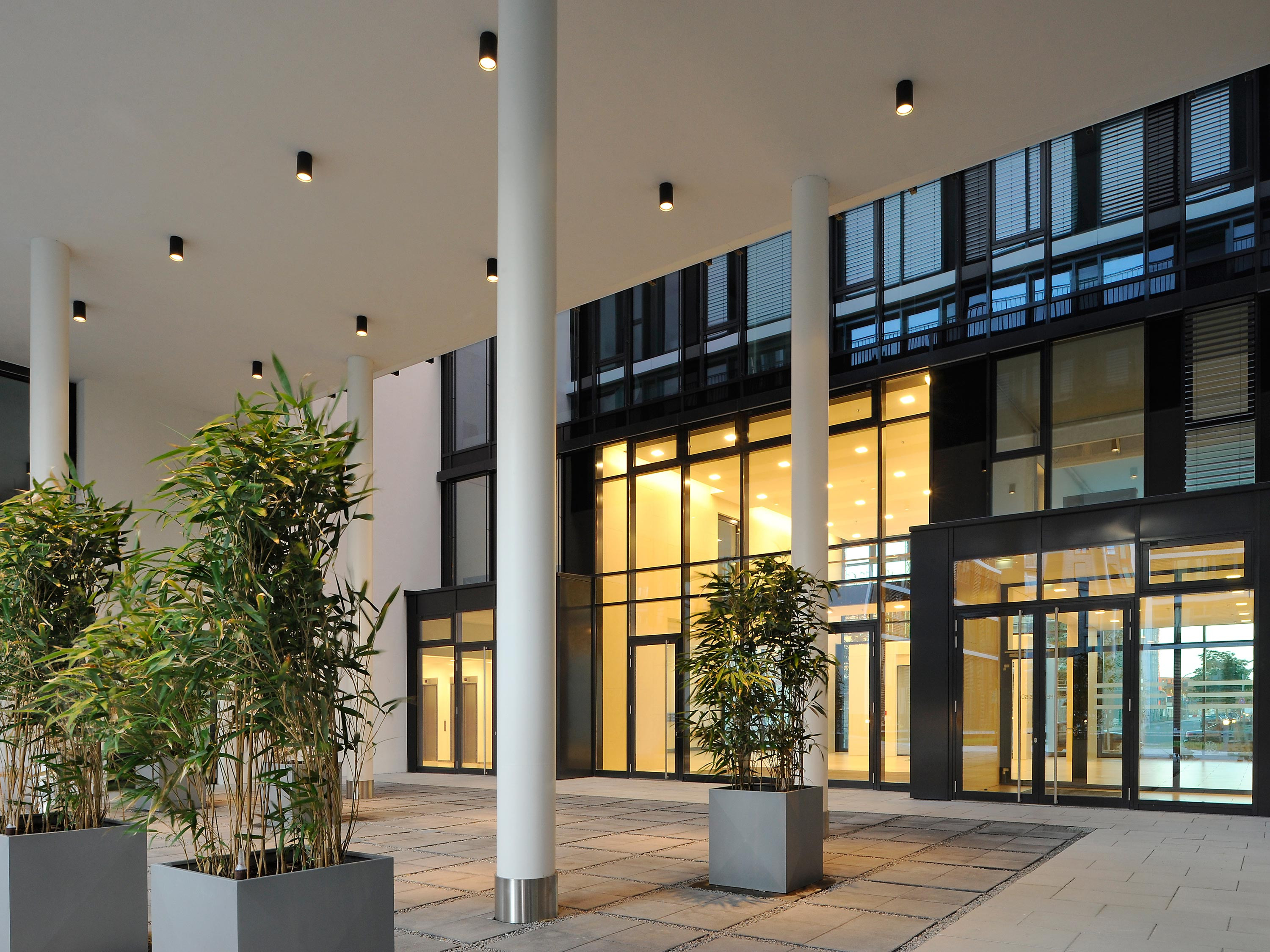 The house shows a changing face on the different sides. At Grasbrook, the entrance to the house responds exactly to the street line from the east, opening across almost 8 m high, covered by a steel table closed to the outside. The glass lobby is a “meeting point” and a starting point in the middle of the house, shielded from the western residential courtyard by a bamboo garden.