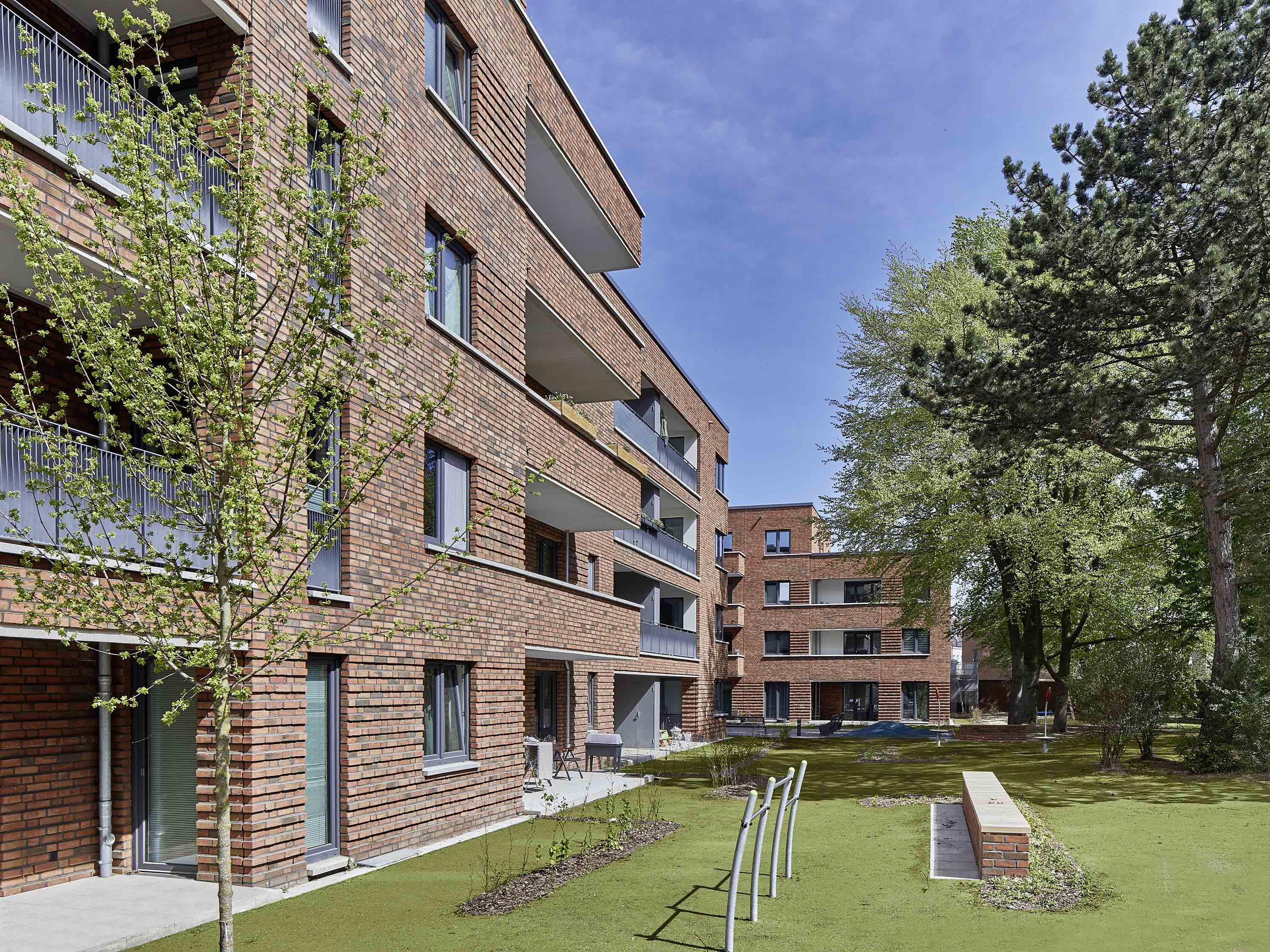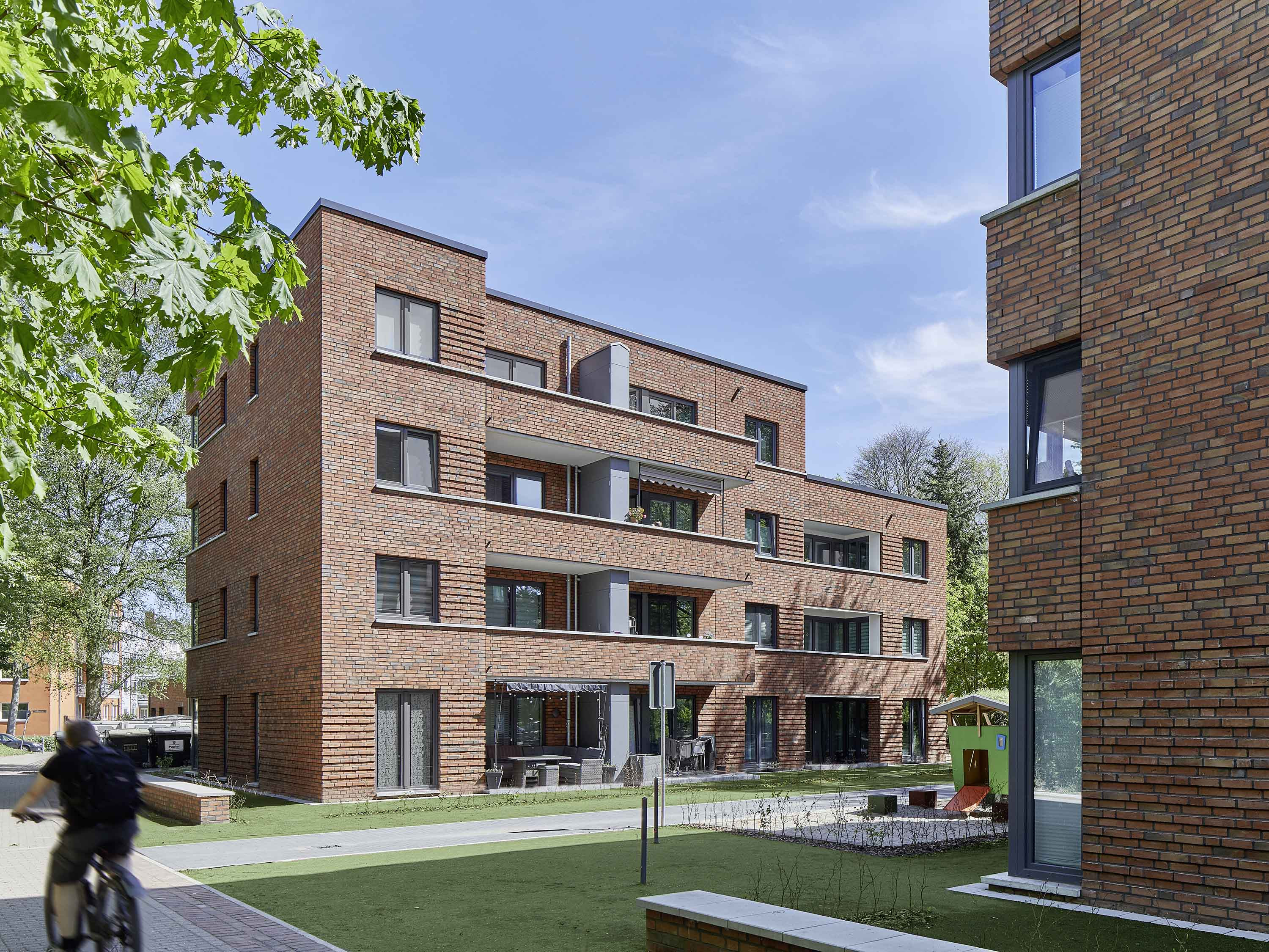 In materiality, colour and texture, the facades take up the brick architecture of the surroundings and receive rhythm and plasticity through the cut loggias or balconies.
