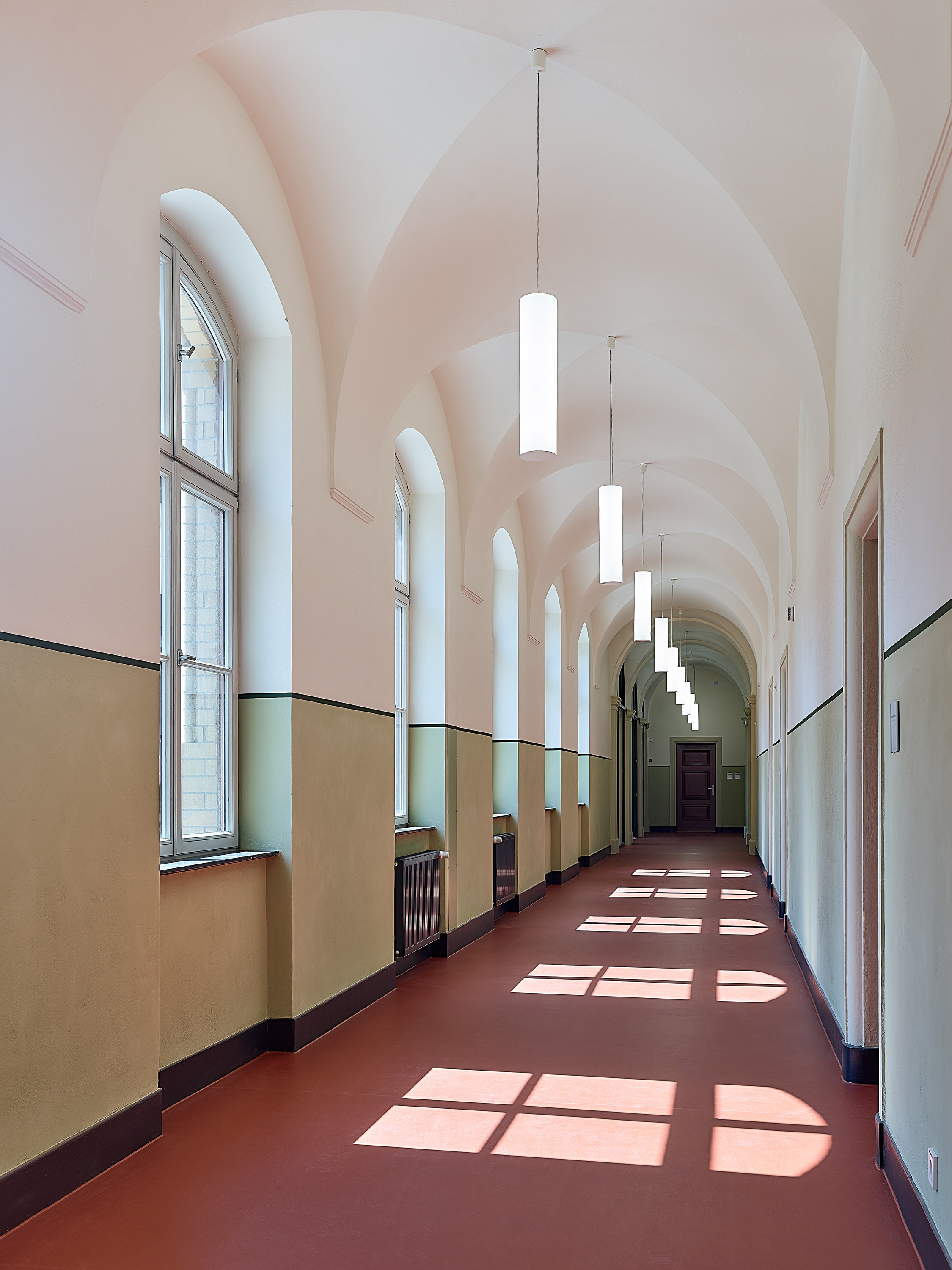 Connection and interface areas, primarily for the technical media supply between the old and new buildings, were adapted.