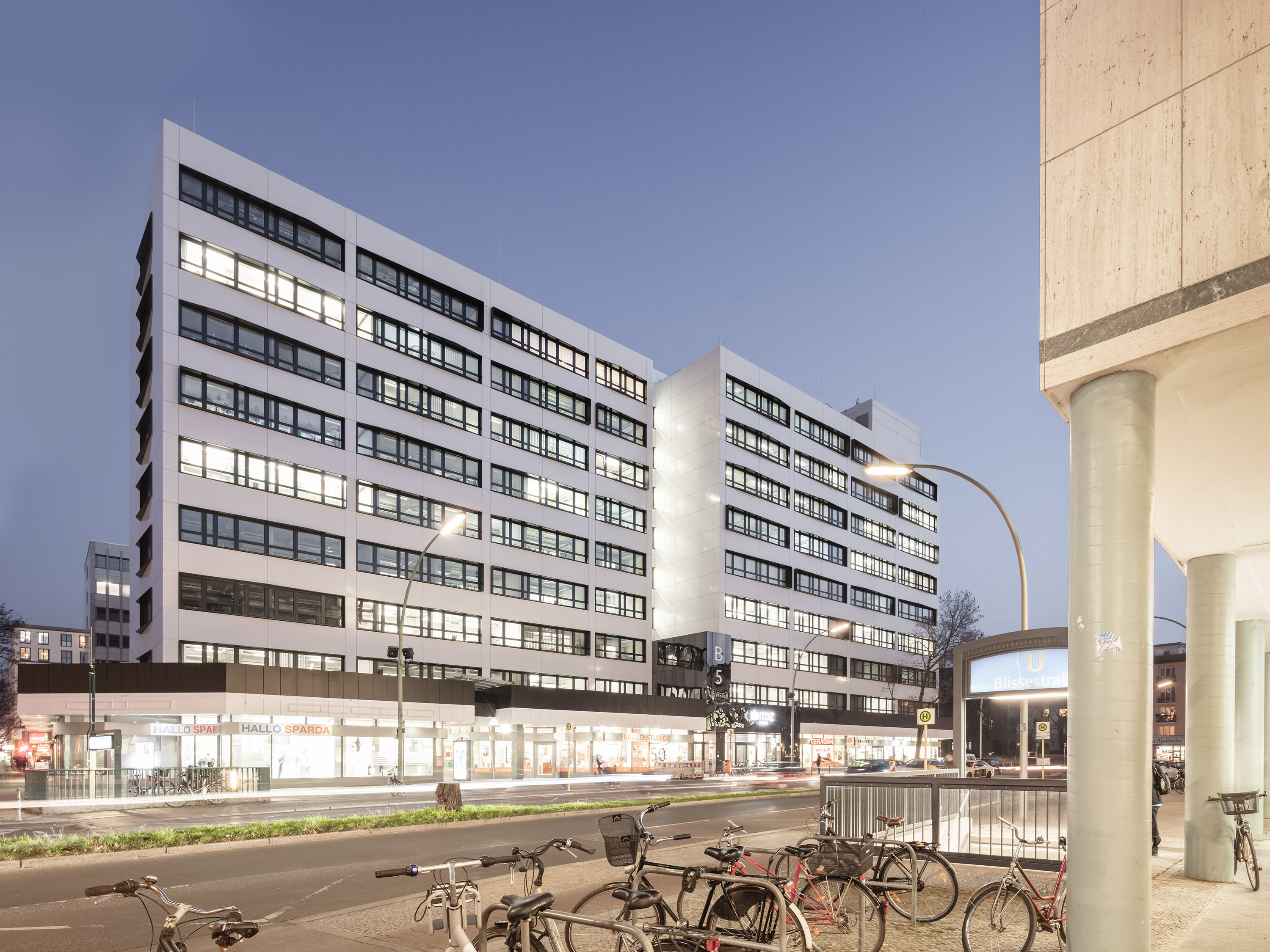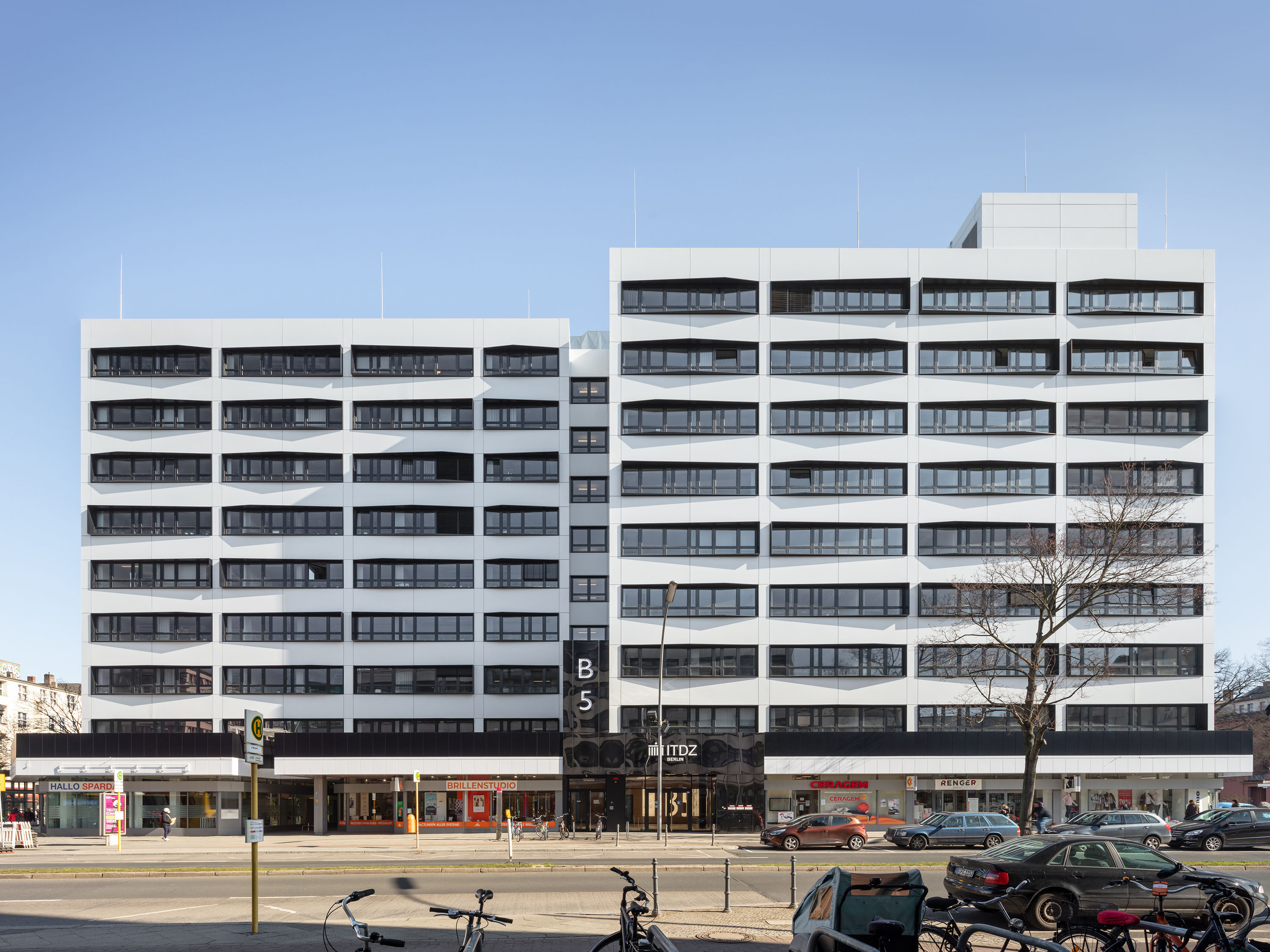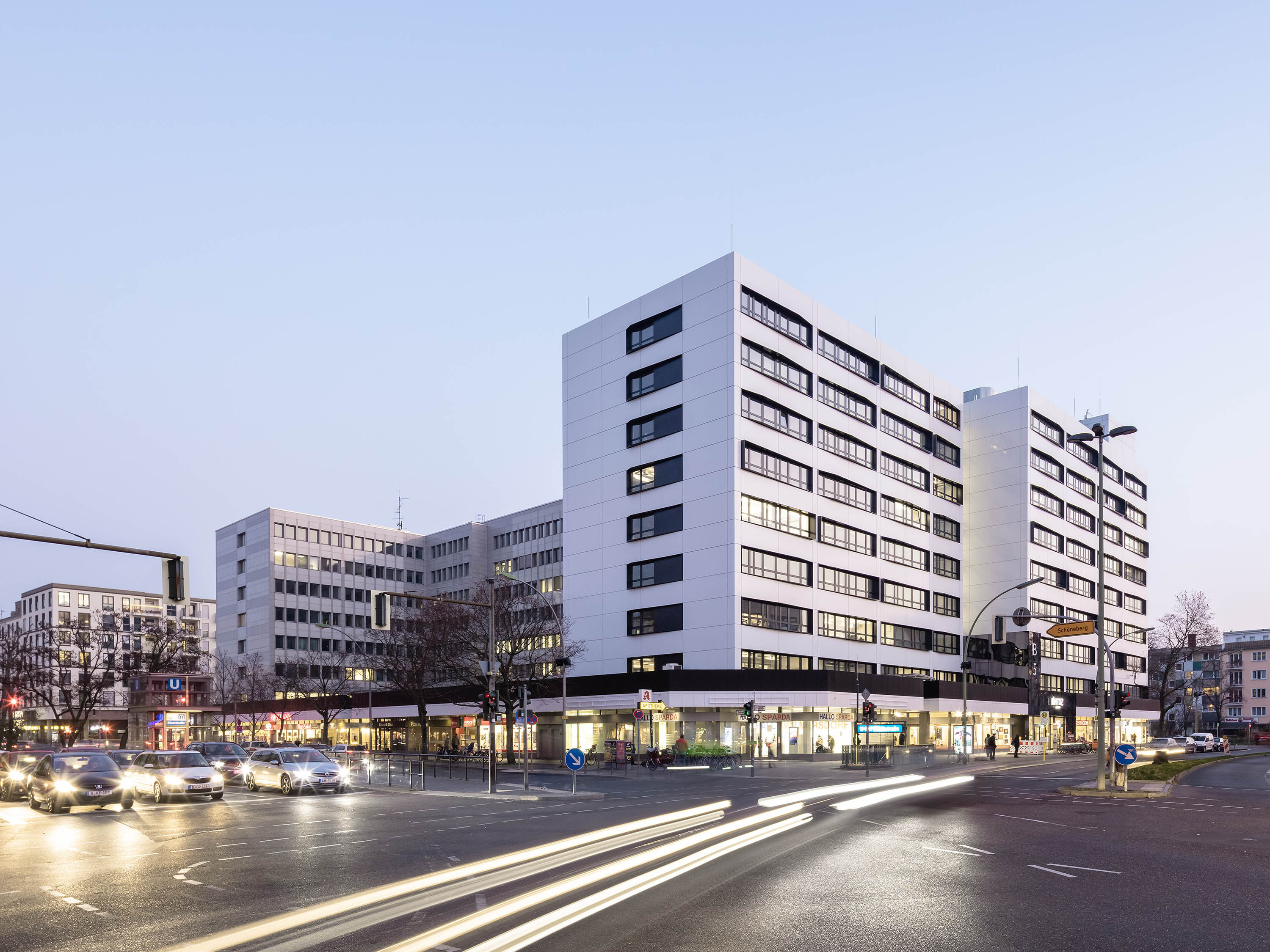 Built in 1971, the former Berlin-Wilmersdorf tax office covers around three quarters of the block Blissestrasse 5 / Berliner Strasse 132 / Uhlandstrasse 97 / Wilhelmsaue 26-27. The ground floor is almost completely built over and is mainly used for retail and parking purposes.