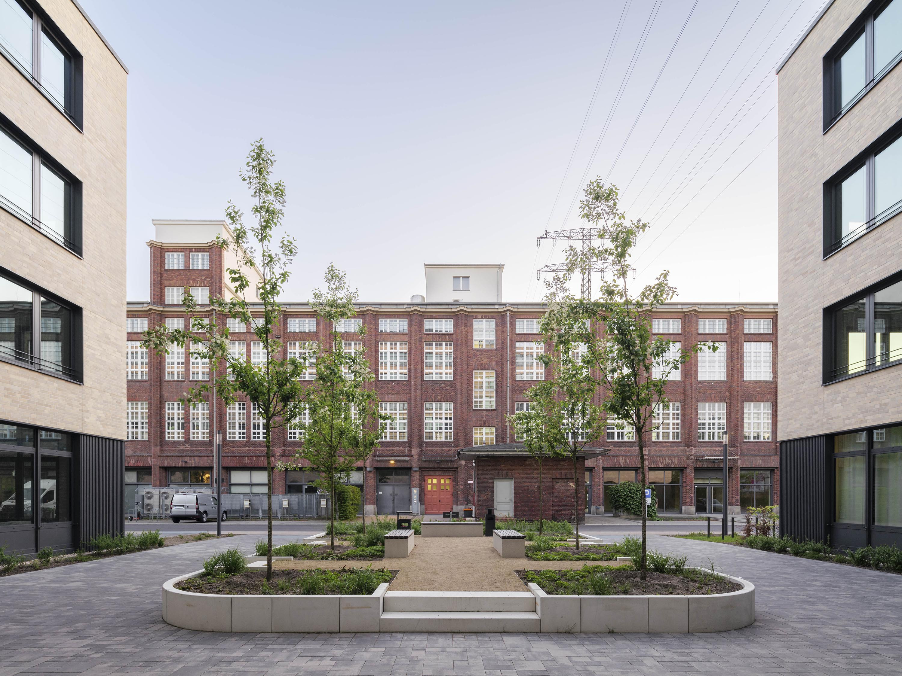 The street as well as both buildings in the project are named after the doctor and author Leopold Bornitz and his brother, the parish priest Alexander Bornitz. Between the two volumes are the non-profit Lichtenberger Werkstaetten, which belong to the foundation rehabilitation centre Berlin-East. To the west, the "LEO" office building is bordered by the listed former workshop building of the Konsumgenossenschaft Berlin, built in 1926-27 by Otto Wettstein. To the rear is another listed building, the industrial buildings Josef-Orlopp-Strasse 32/54, and to the east of "ALEX" is the office building "The Wave", built in 1997.