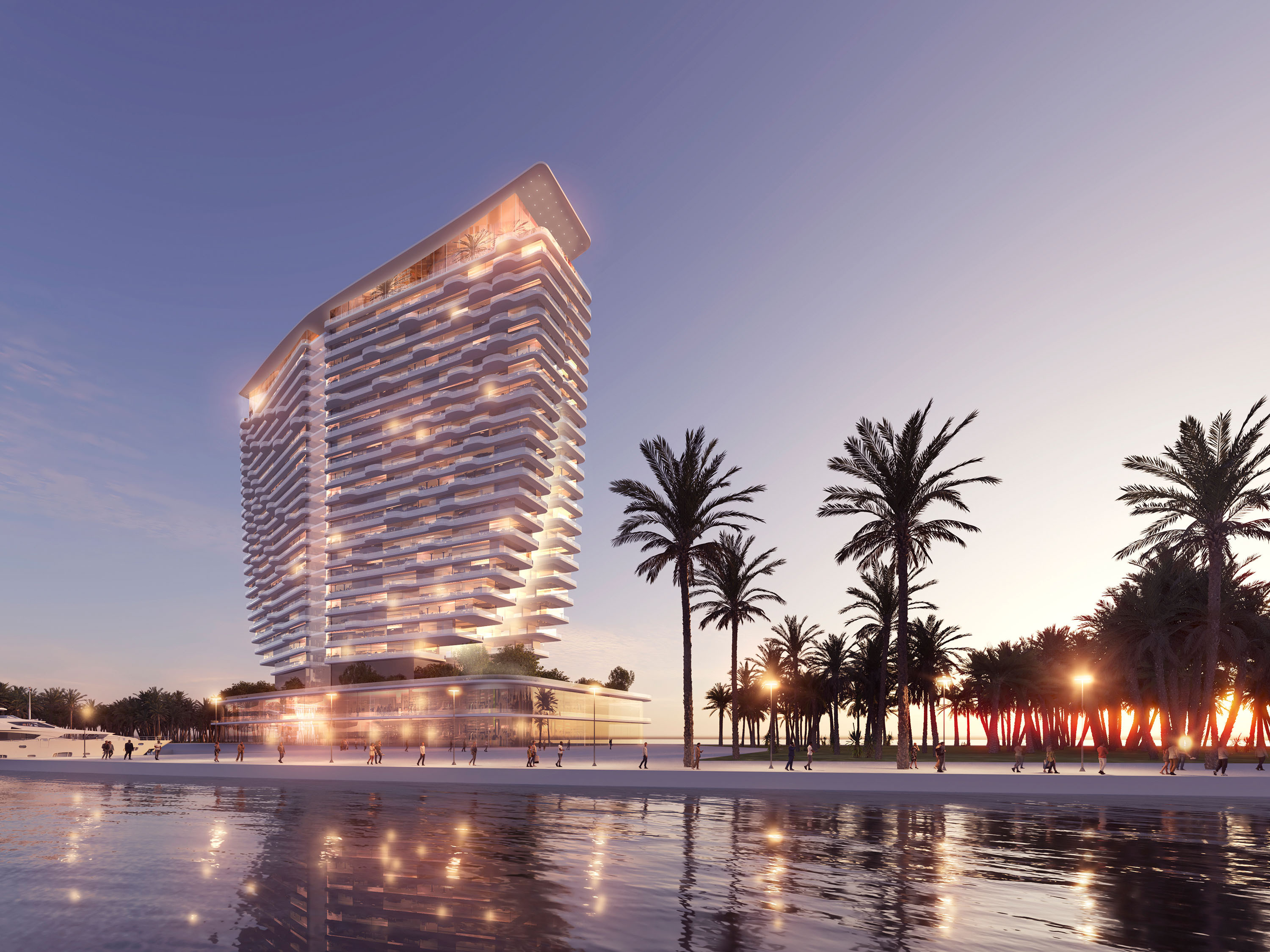 The Radisson Blu congress hotel with 400 rooms will be built at the center of the artificial crescent-shaped peninsula in the Port of Baku and, with its expressive architecture, is intended to become a highly visible landmark of the Crescent Island.