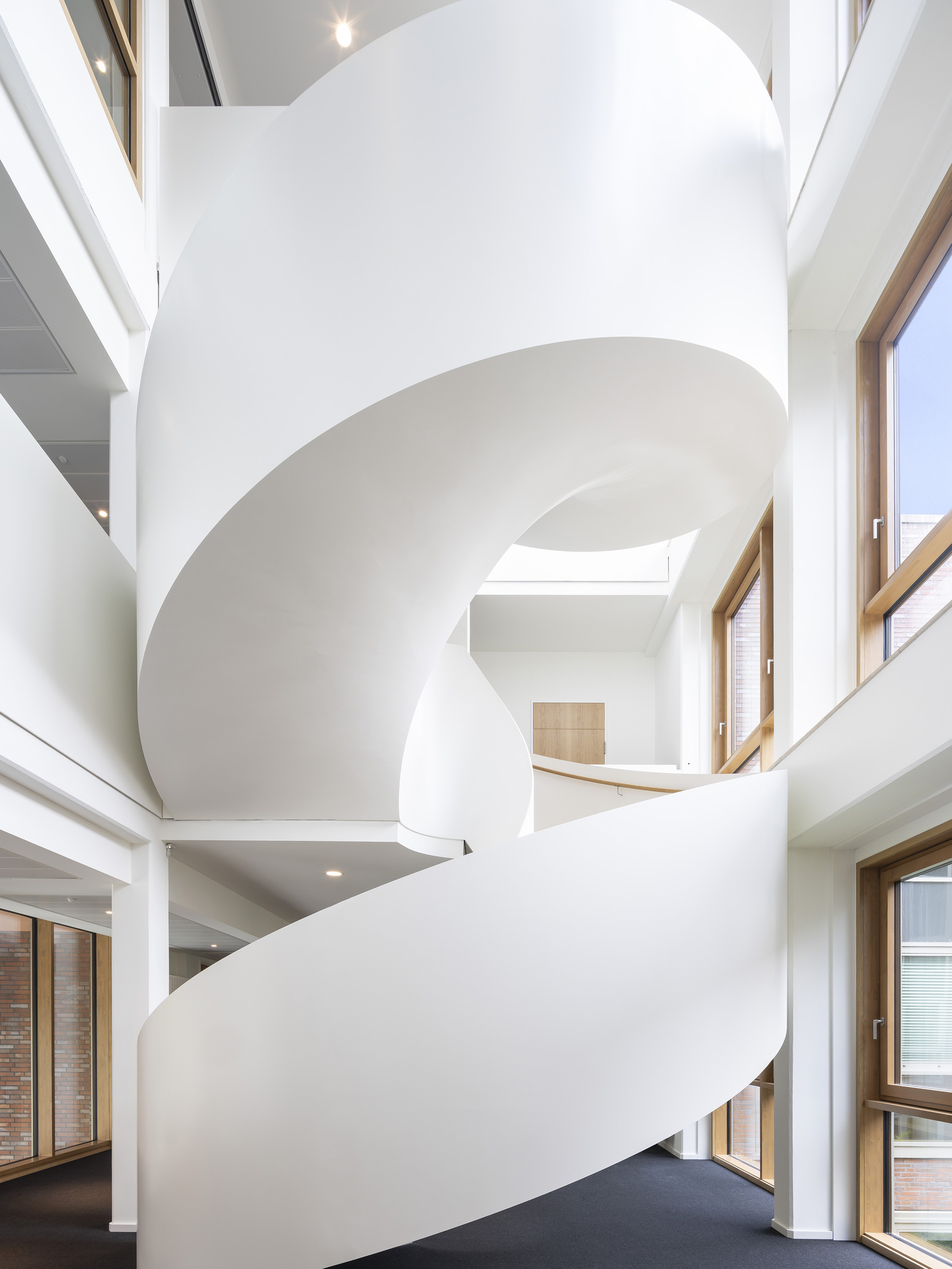 Workstations and meeting rooms are located on the first two upper floors. The executive offices, a large conference room and access to the roof terrace are located on the third floor. A spacious spiral staircase on the first floor also provides access to the office space above and ensures optimised office processes thanks to short distances.