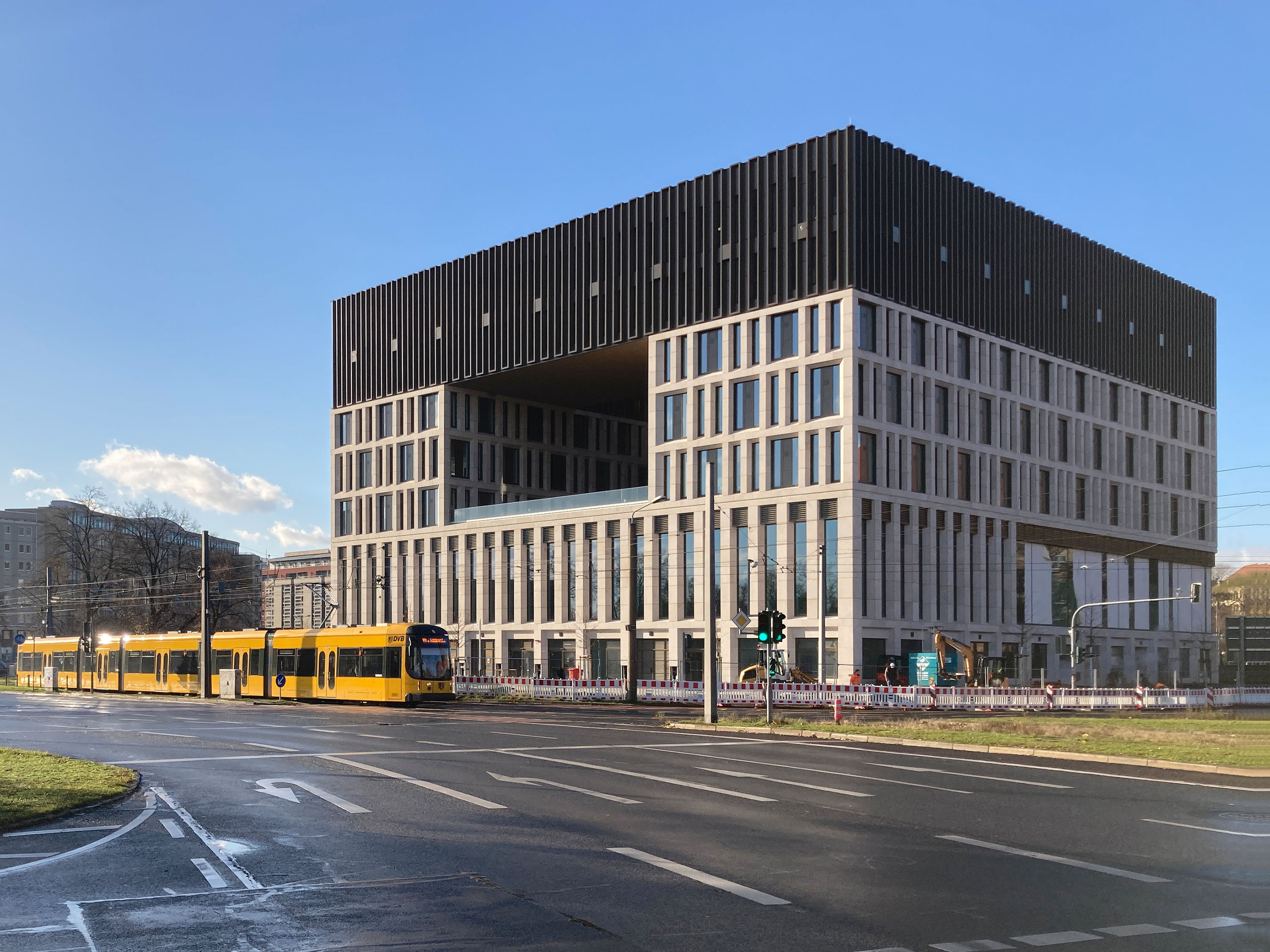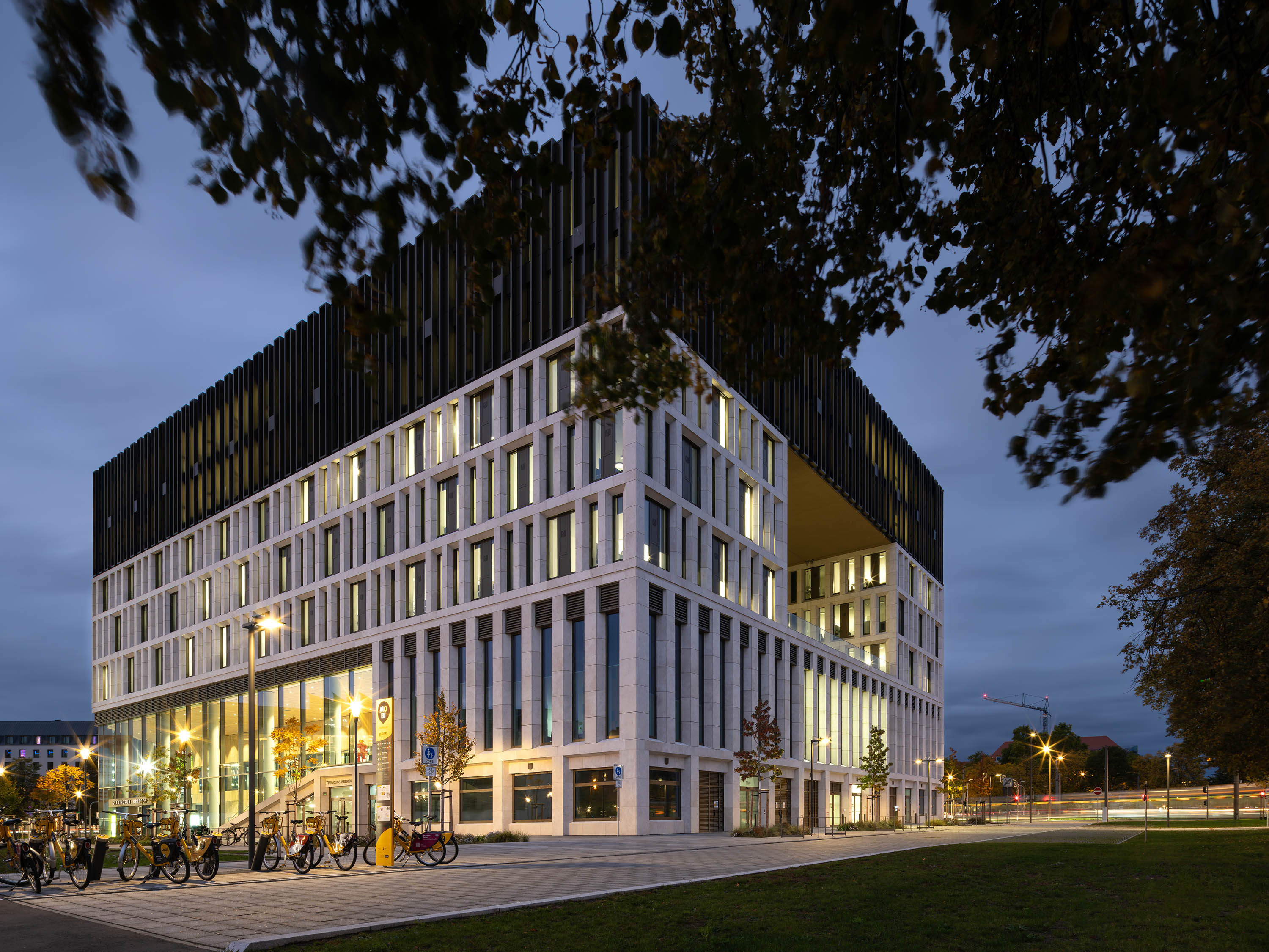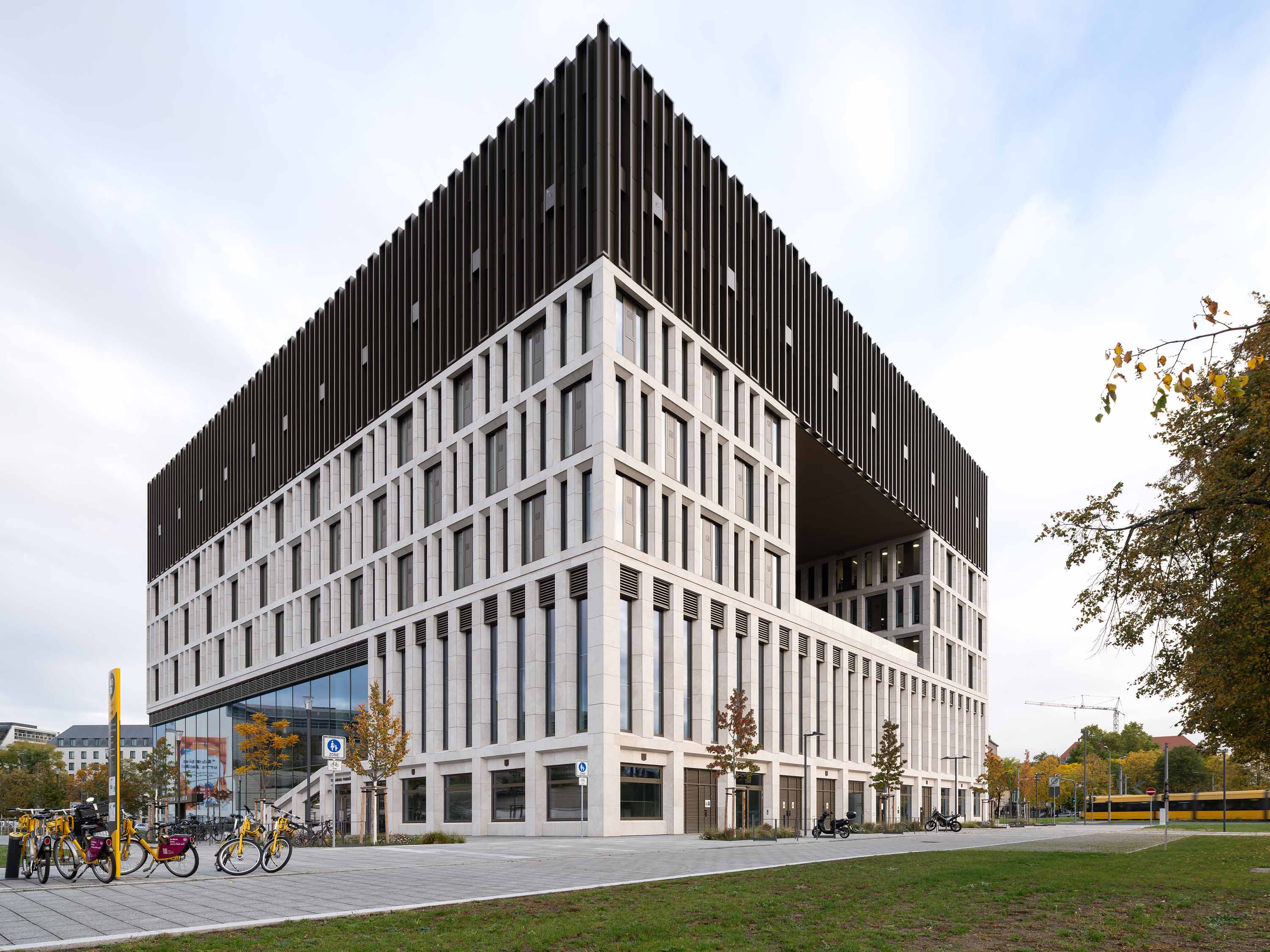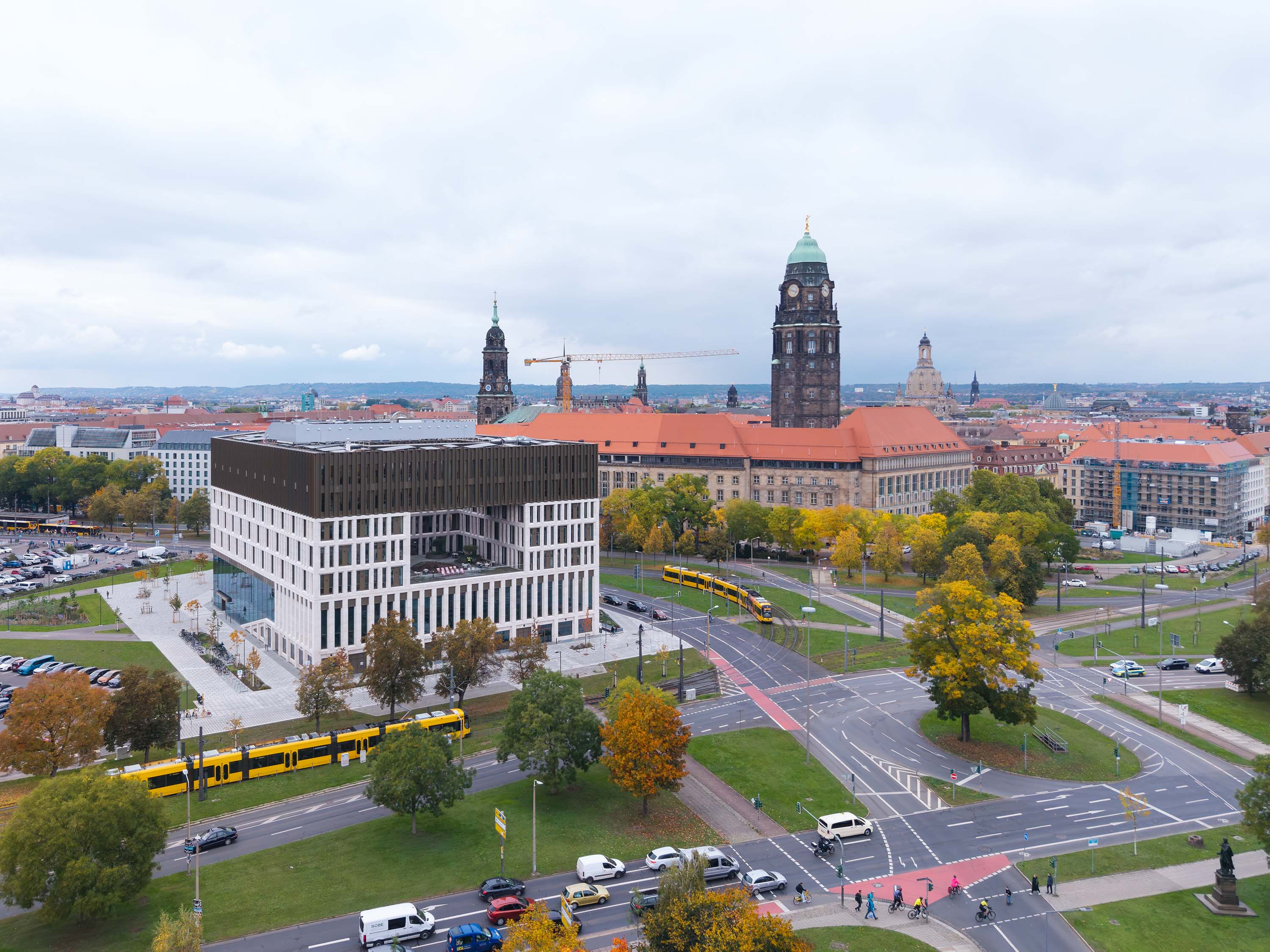 Situated opposite the historical city hall and leading in the direction of very extensive areas of greenery and transport to the east, the new building marks the edge of Dresden’s old city centre.