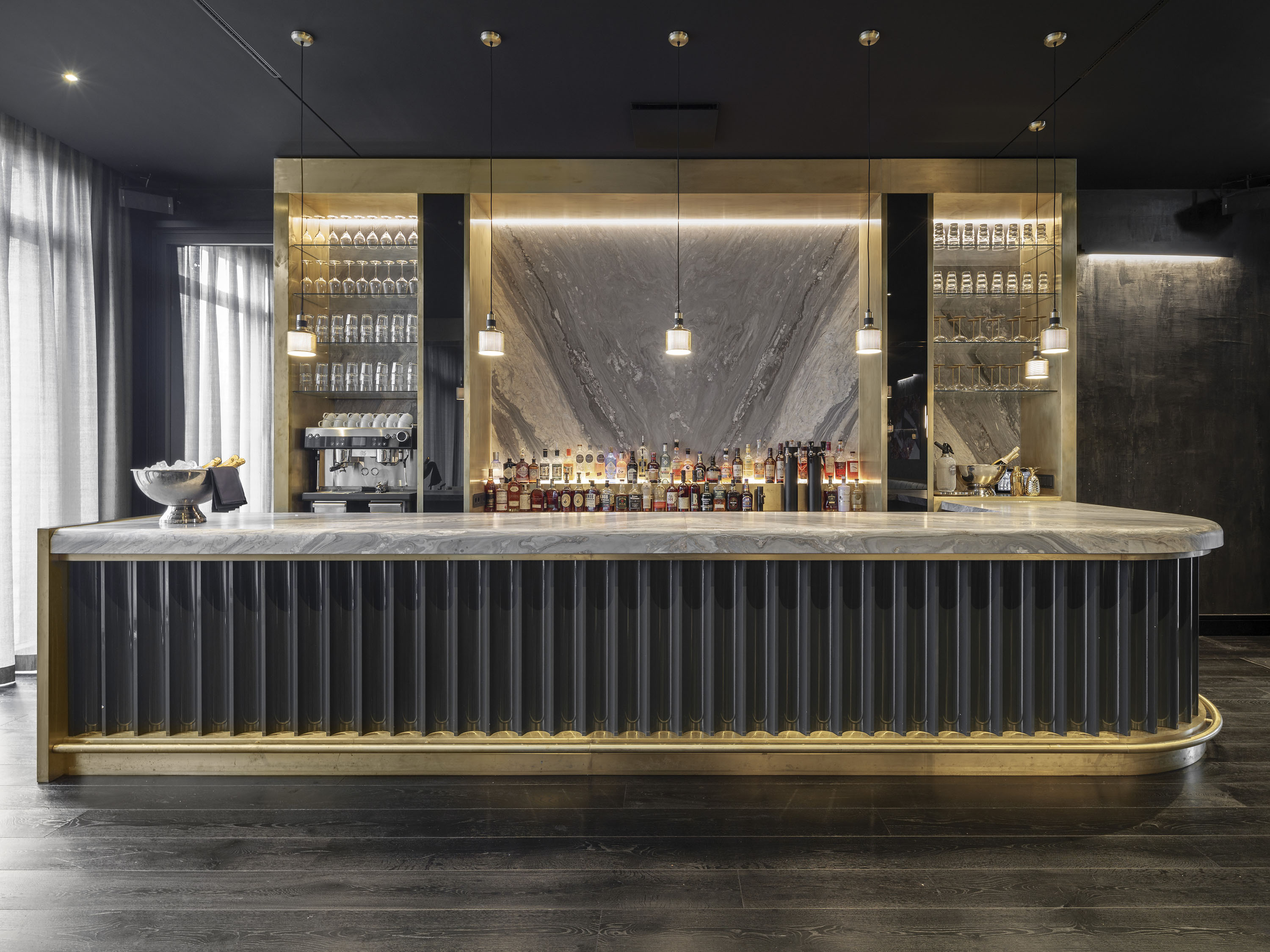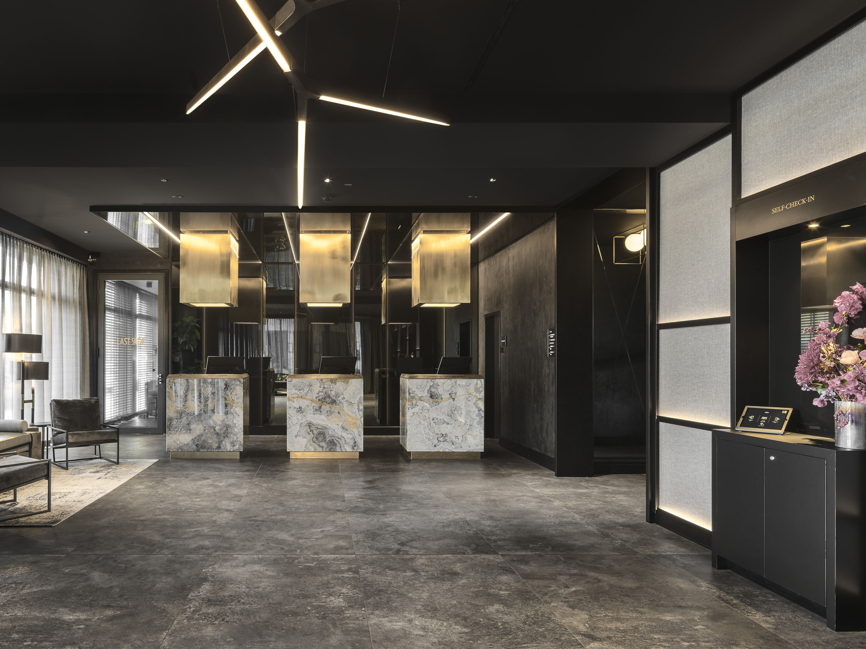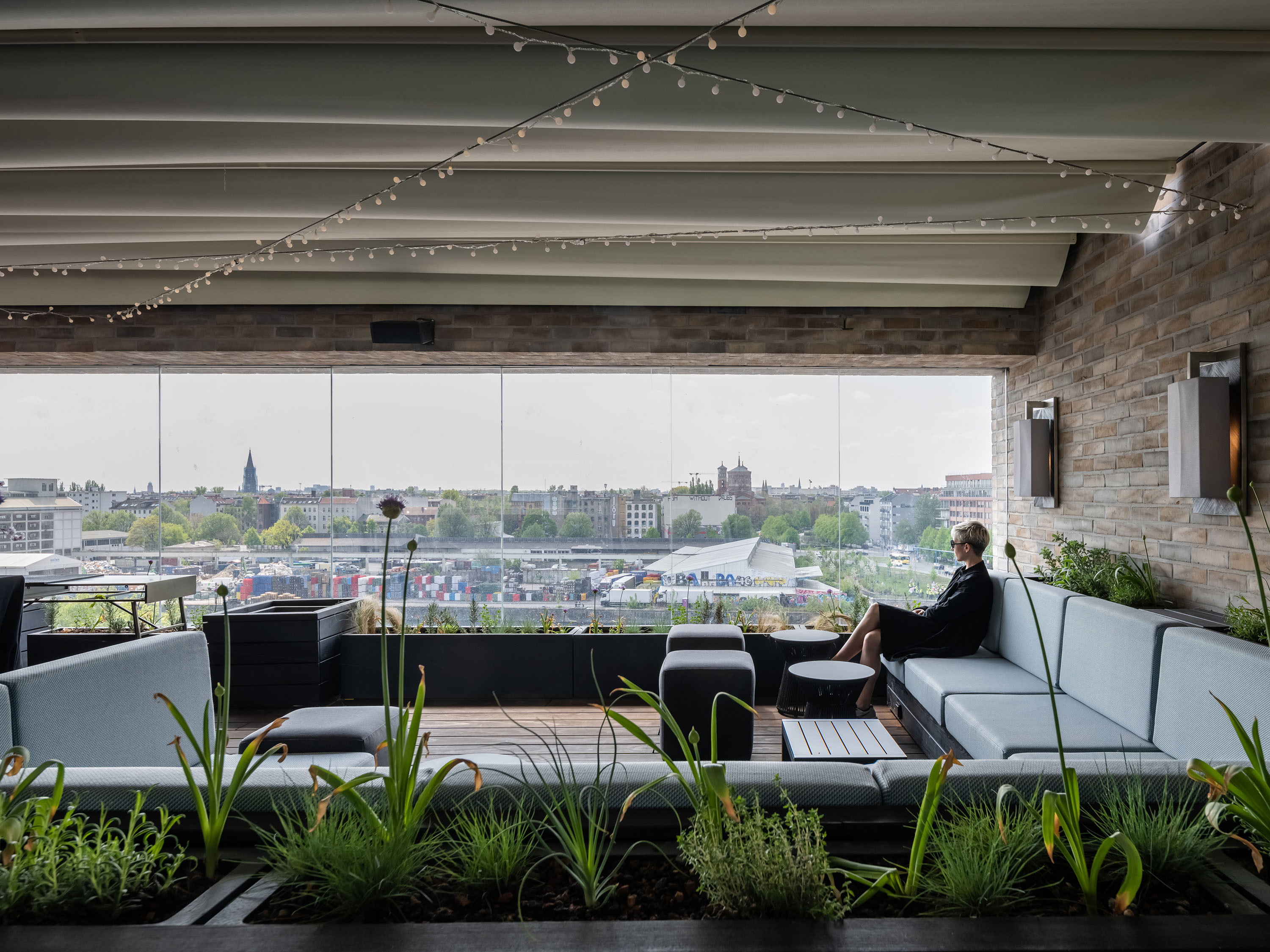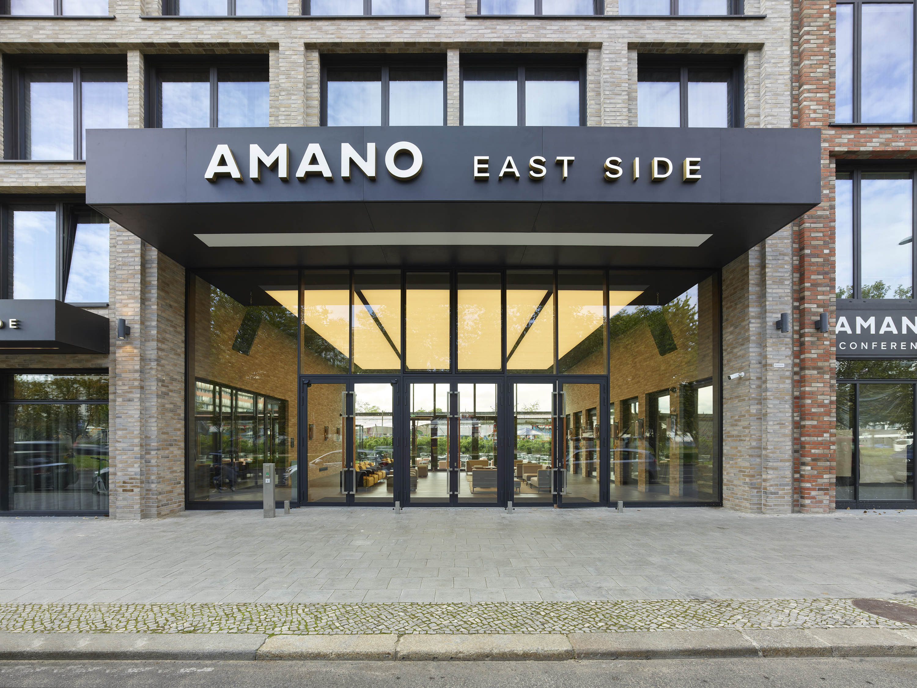 A two-part building complex was planned as the new development, consisting of an eight-storey hotel in the eastern section and a seven-storey office building in the western section with a shared two-storey underground car park. In the area of the hotel, at the boundary to the office building, the complex is interrupted by a two-storey, 12-metre-wide "Spree window", which serves as a visual axis.