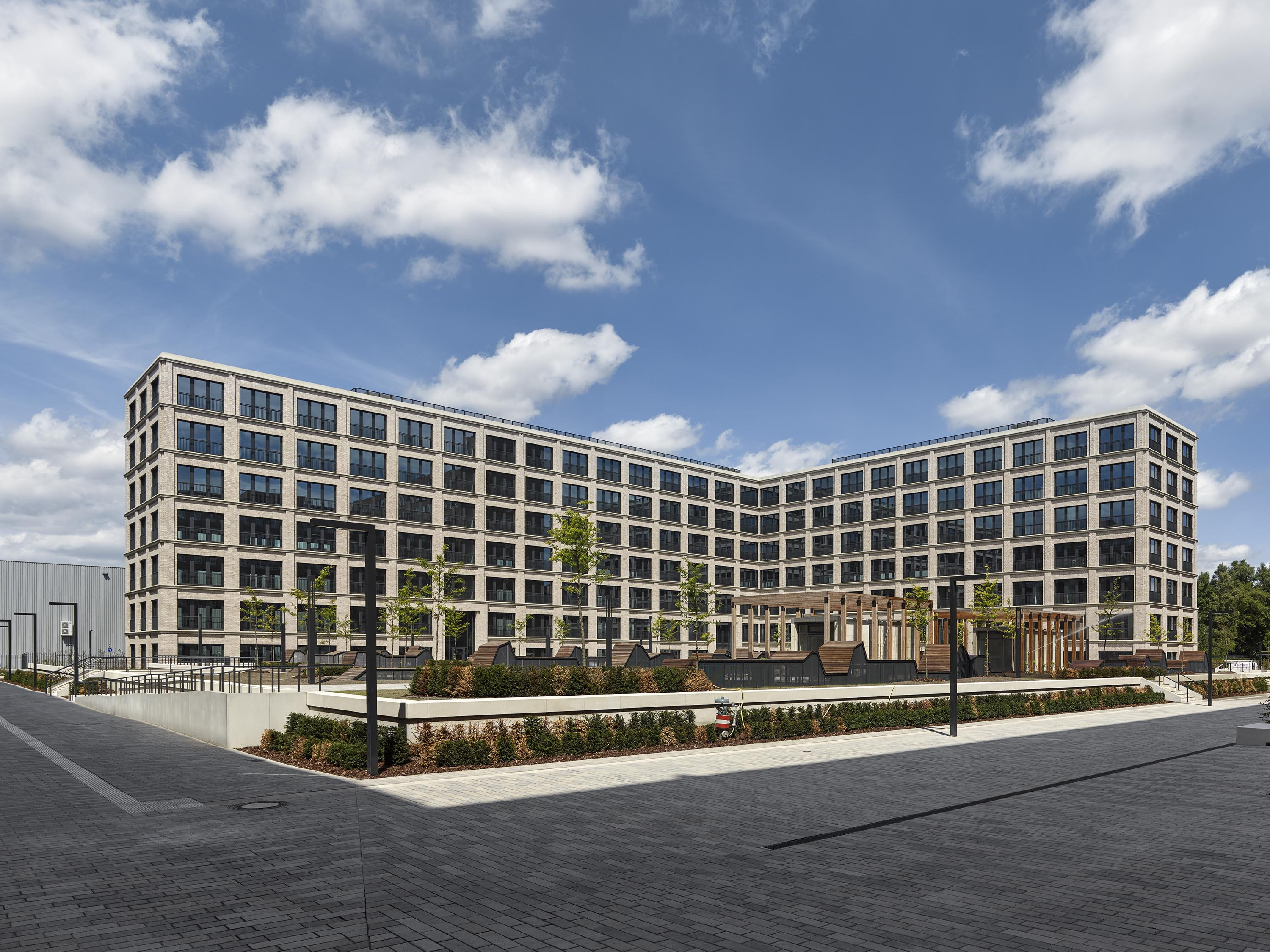 The existing complex was juxtaposed with a similarly closed, urban figure: an angular building with seven storeys (BT1) and another including a three-storey extension (BT2). This created two courtyards with generous green spaces that further emphasise the campus character of the project.