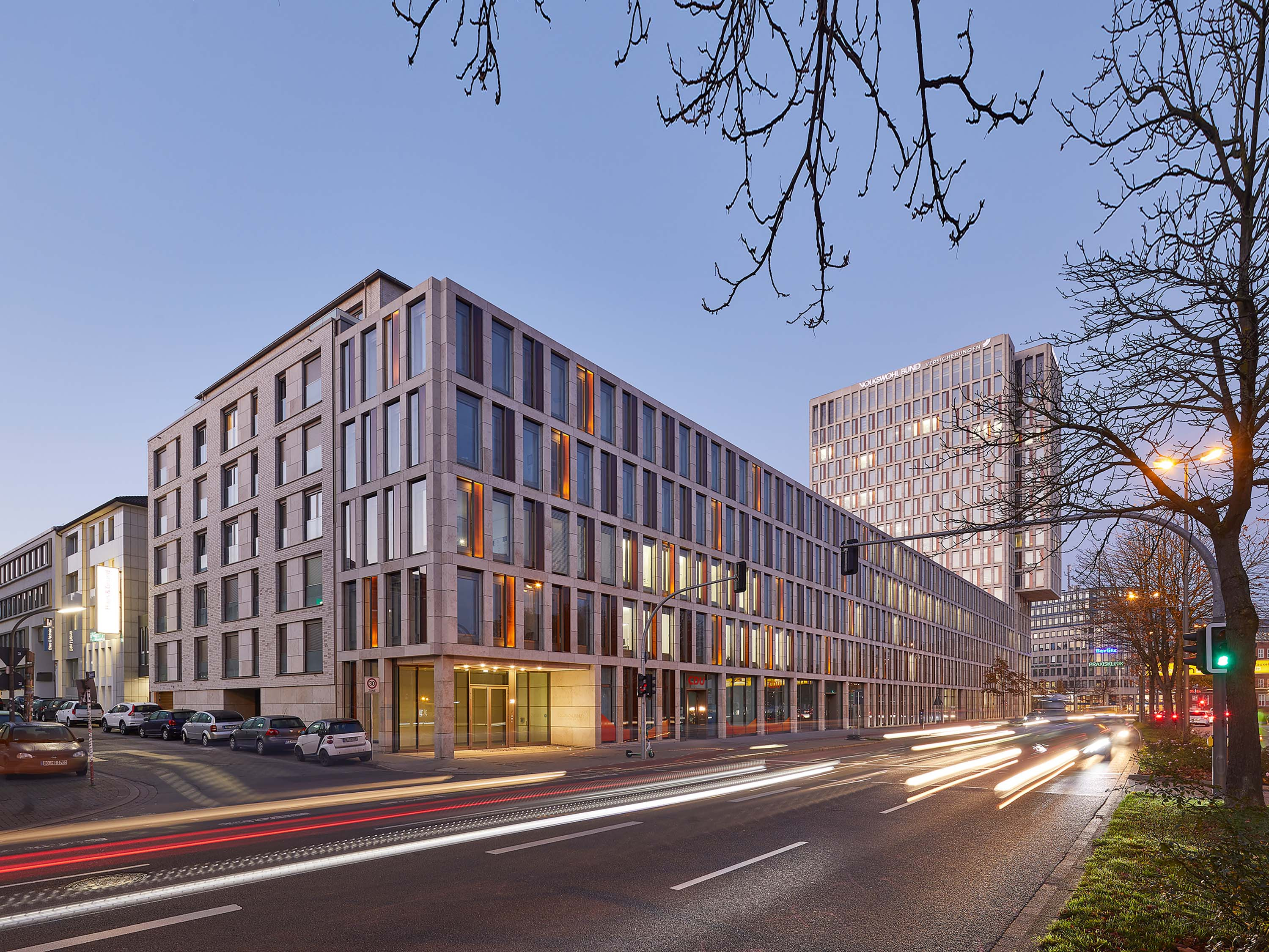 The design for the new headquarters of Volkswohl Bund Versicherung was created as part of a competition in 2007 and replaced the previous building, an office tower designed by Harald Deilmann in 1973.