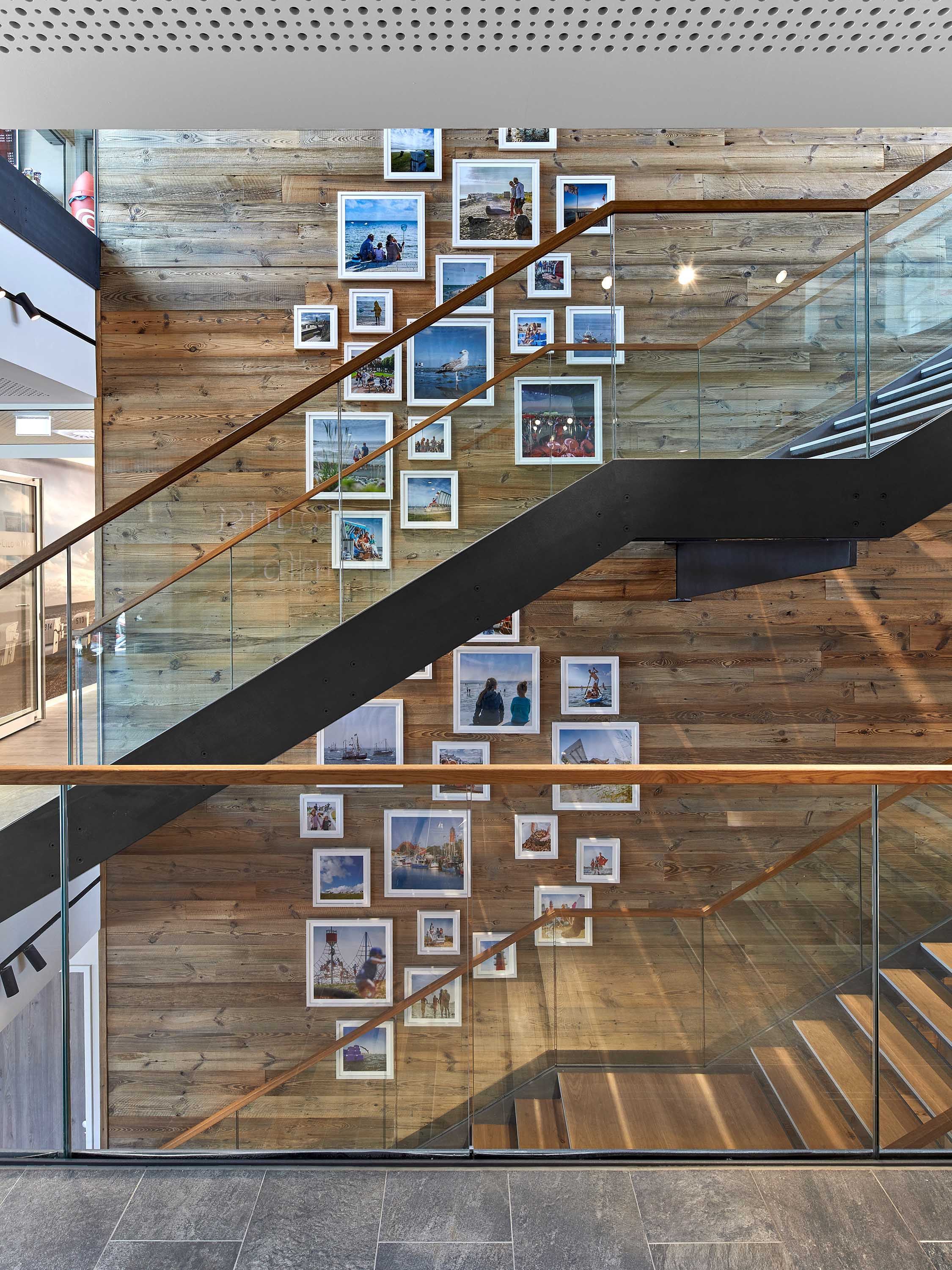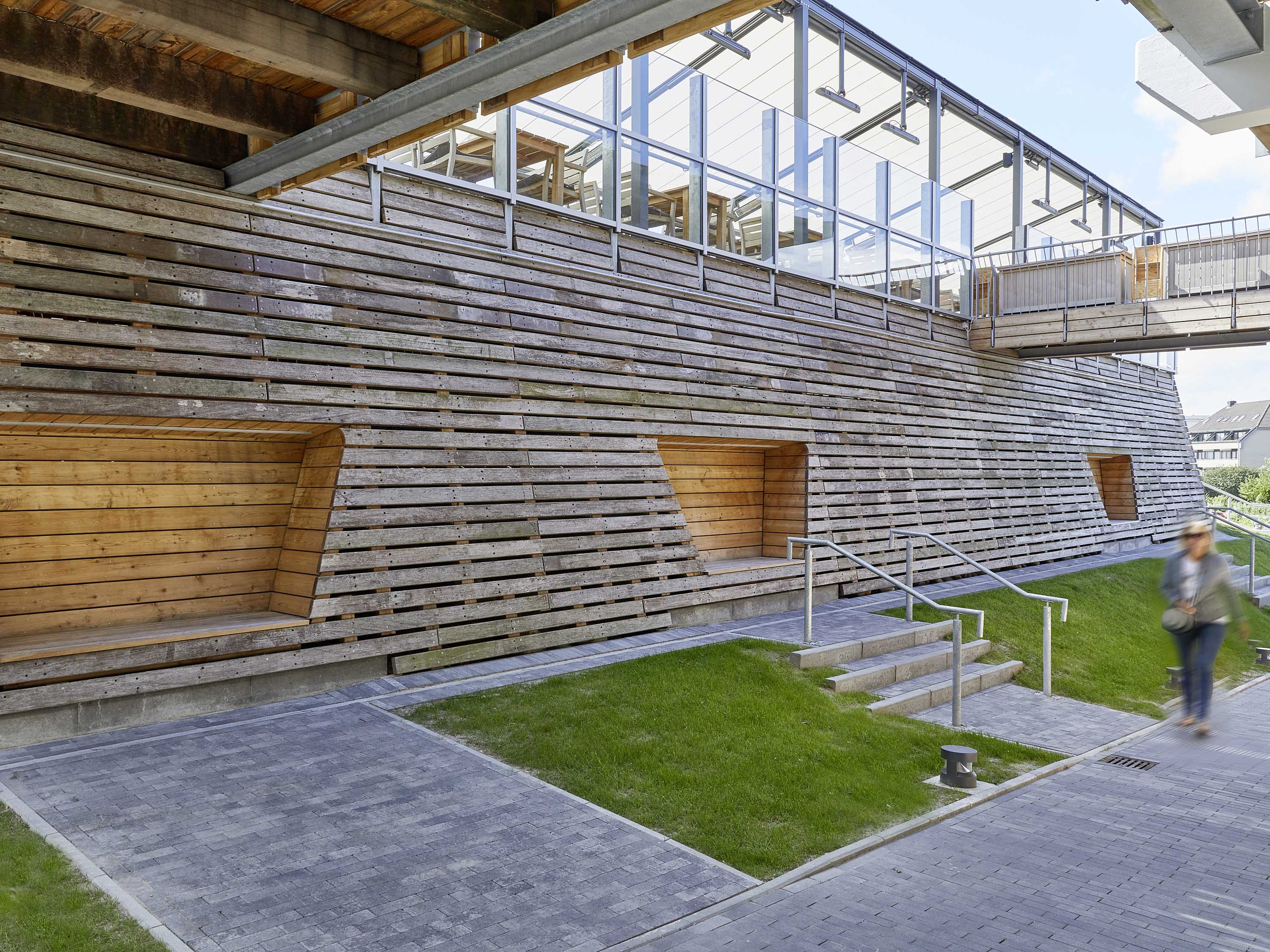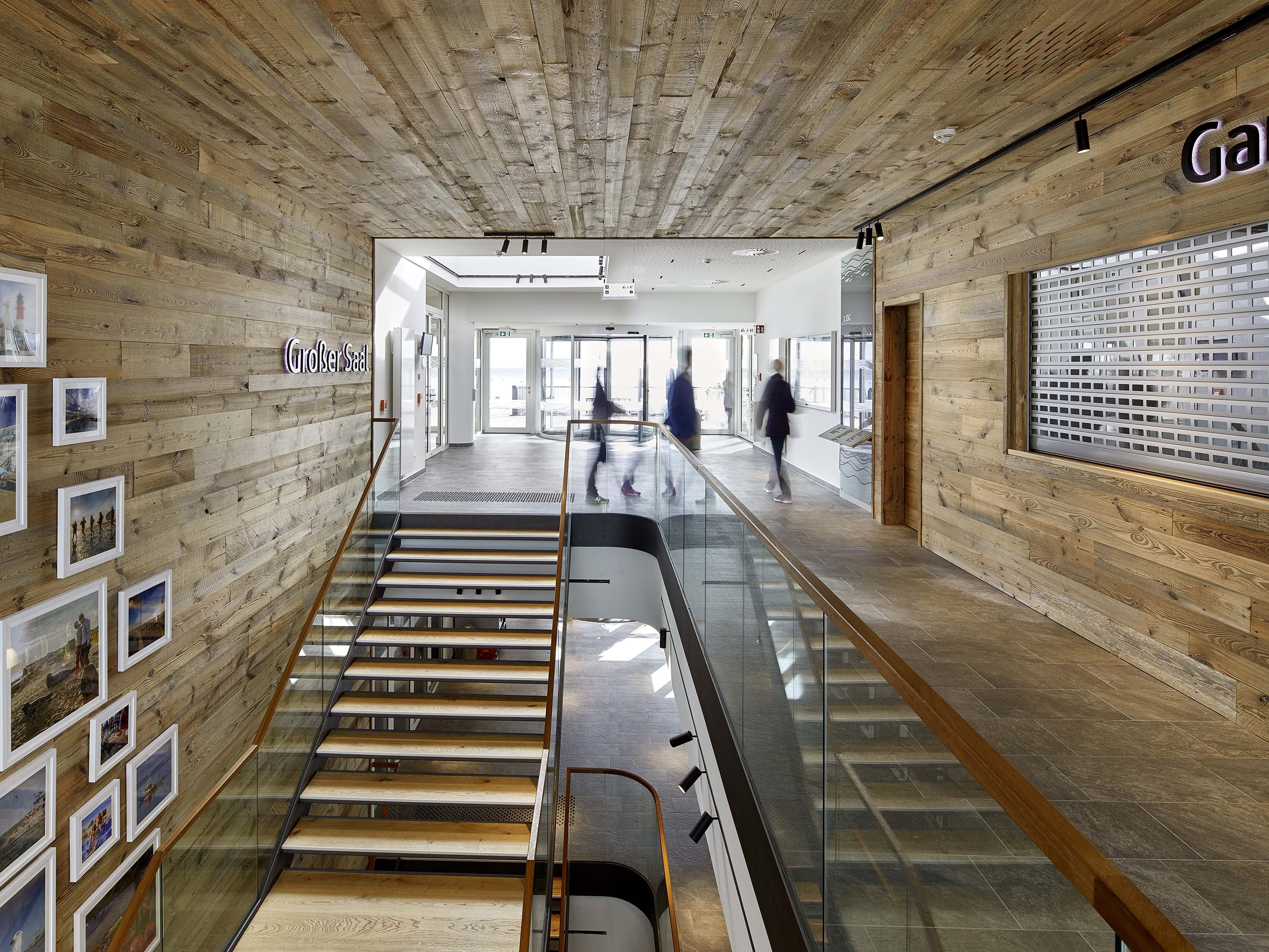 The architecture of the building is a reference to the genius loci of Buesum. A central "joint" was inserted into the existing building at the location on the dyke. The landscape "flows" through the building through this gap.